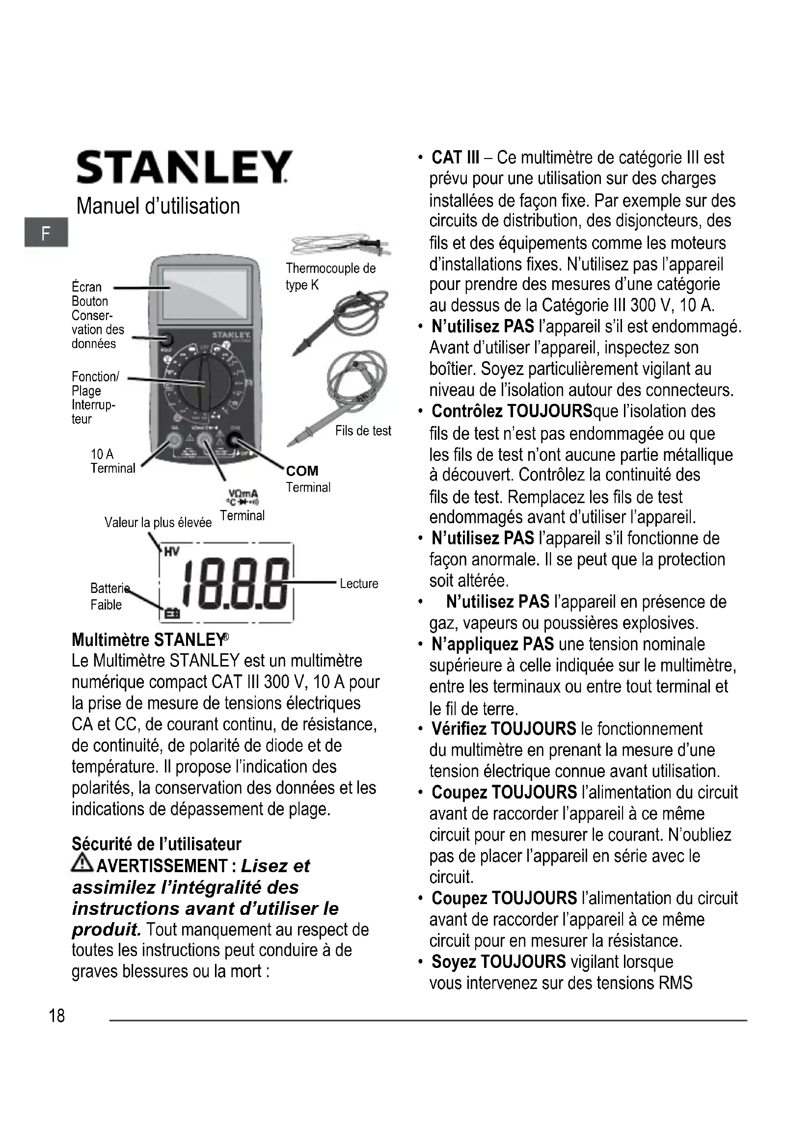 STHT077364 - Multimètre STANLEY - Notice d'utilisation et mode d'emploi gratuit