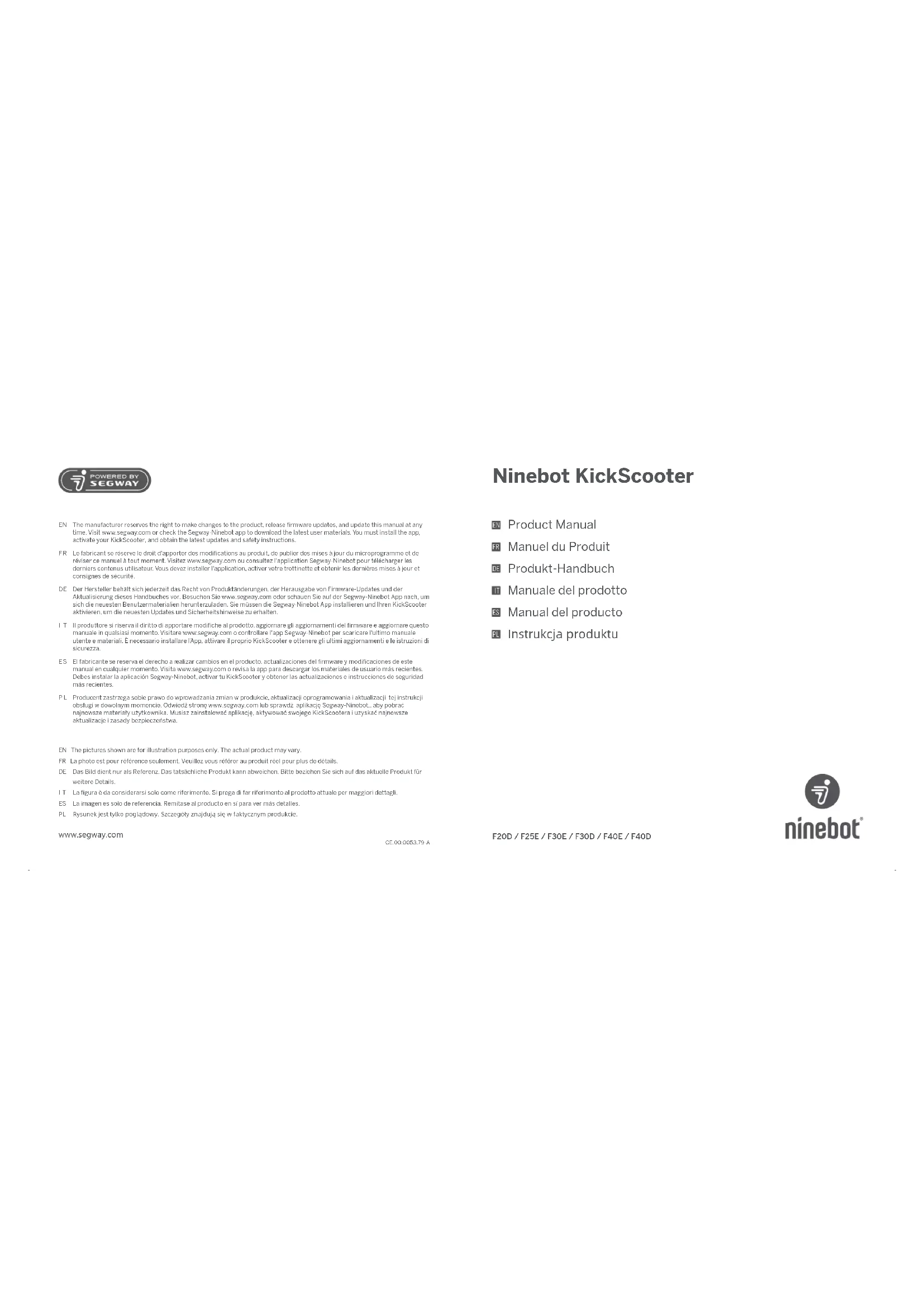 Retrouvez gratuitement la notice de l'appareil Ninebot KickScooter F30E SEGWAY au format PDF.