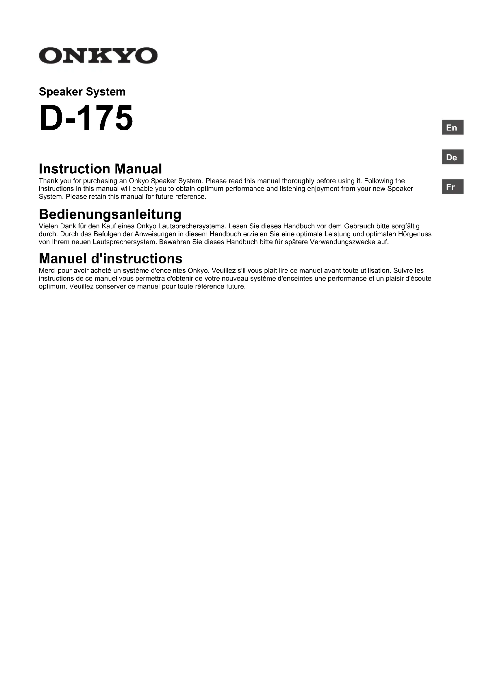 D175 - Haut-parleur ONKYO - Notice d'utilisation et mode d'emploi gratuit