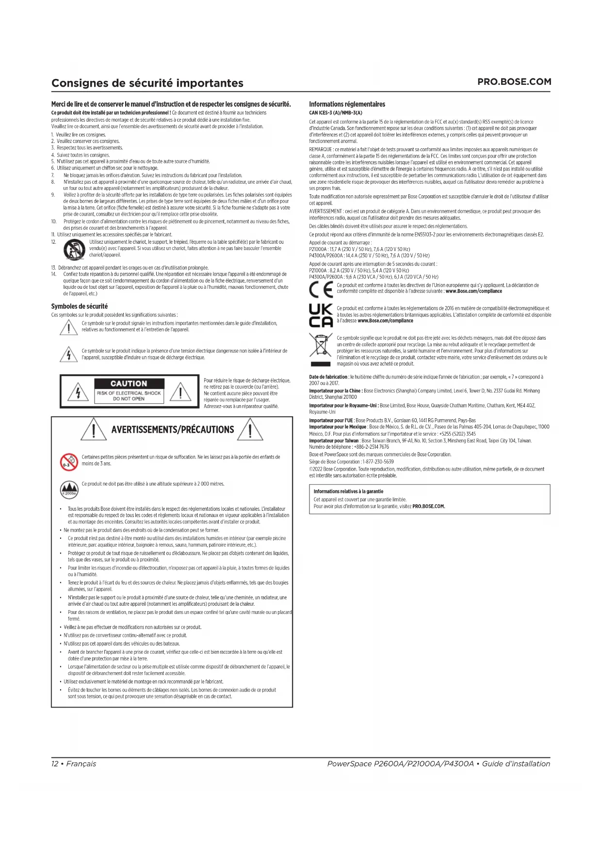 Pour avoir plus d'information sur la garantie, visitez PRO.BOSE.COM.