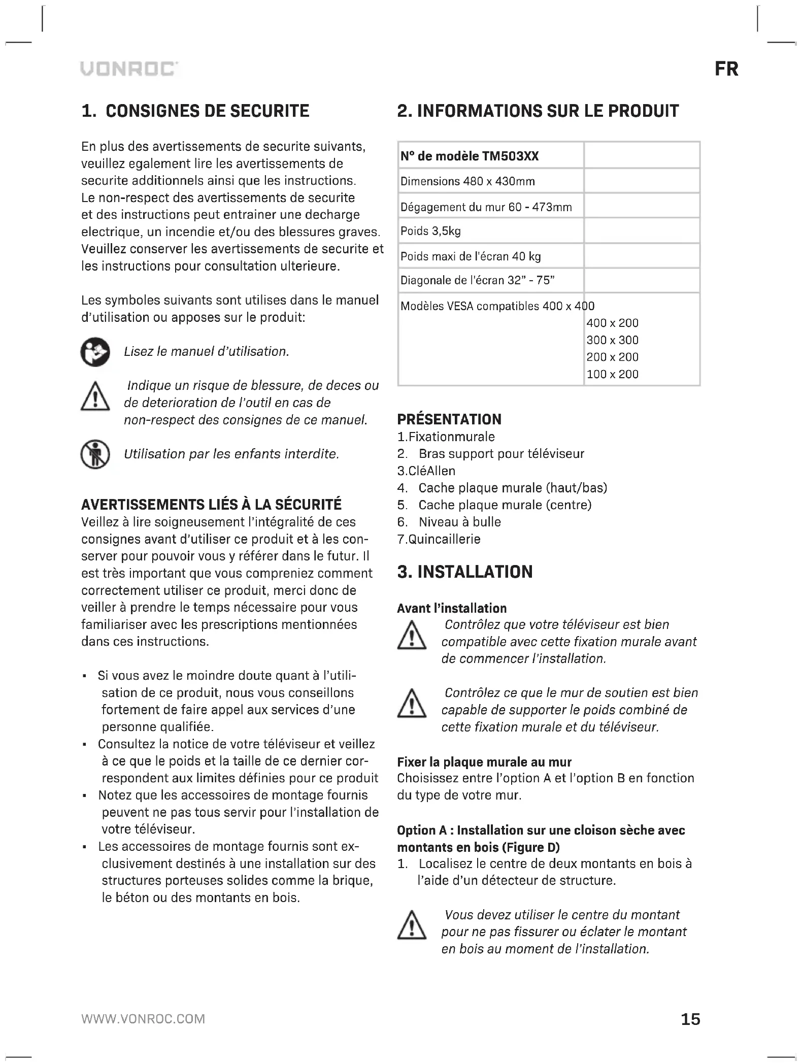 Retrouvez gratuitement la notice de l'appareil TM503XX Vonroc au format PDF.