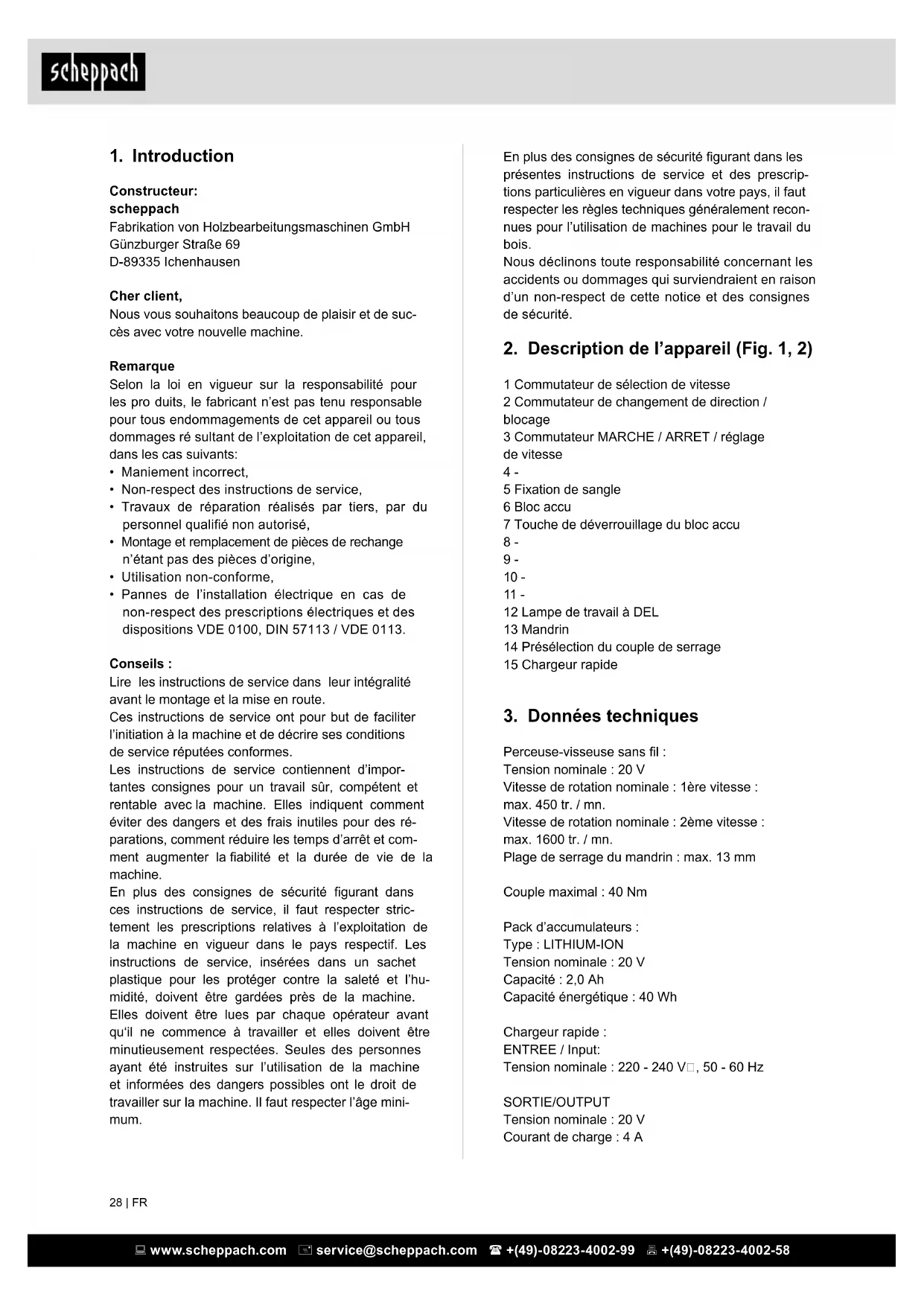 Retrouvez gratuitement la notice de l'appareil CID4020Li SCHEPPACH au format PDF.