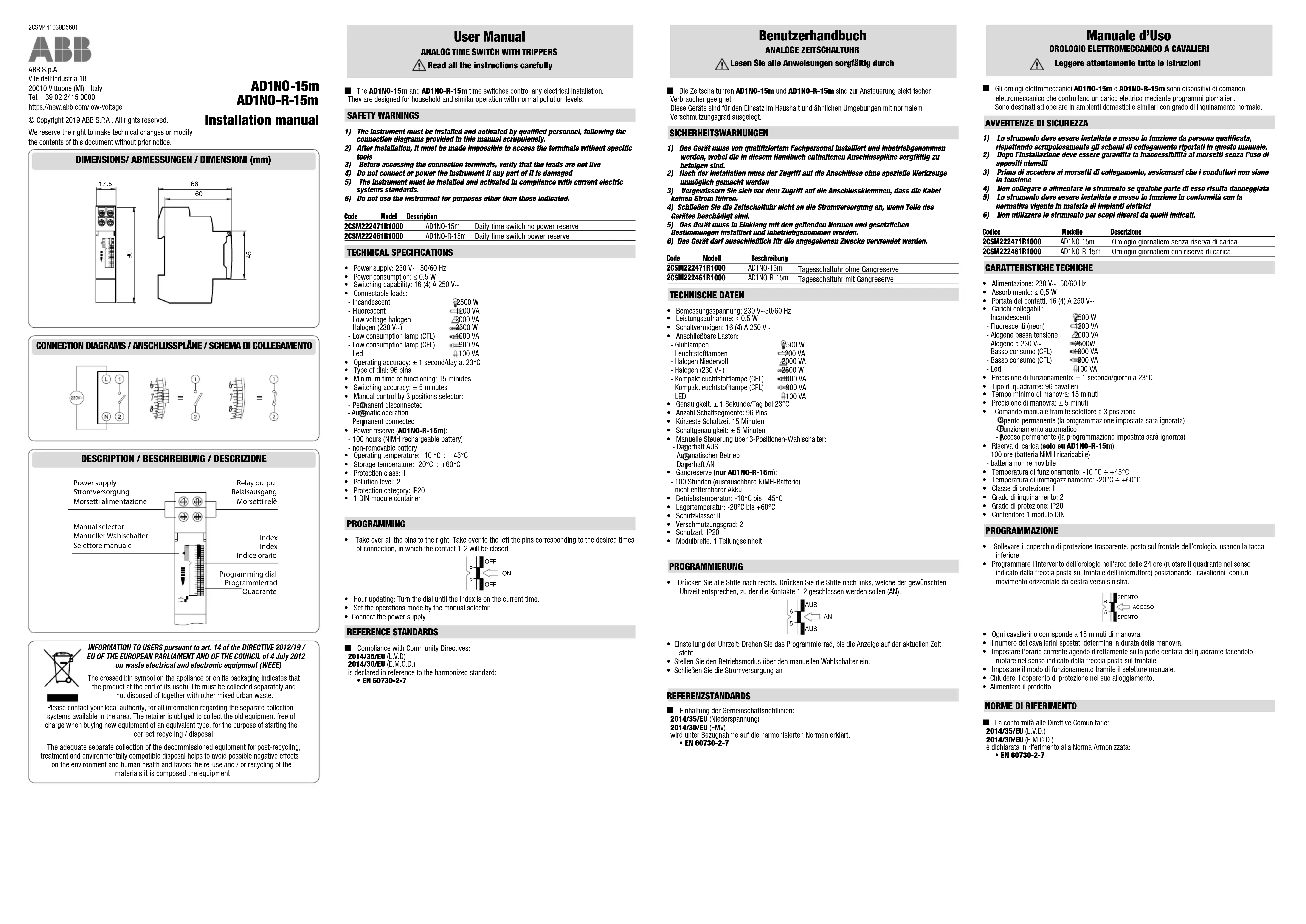 Retrouvez gratuitement la notice de l'appareil AD1NO15m ABB au format PDF.