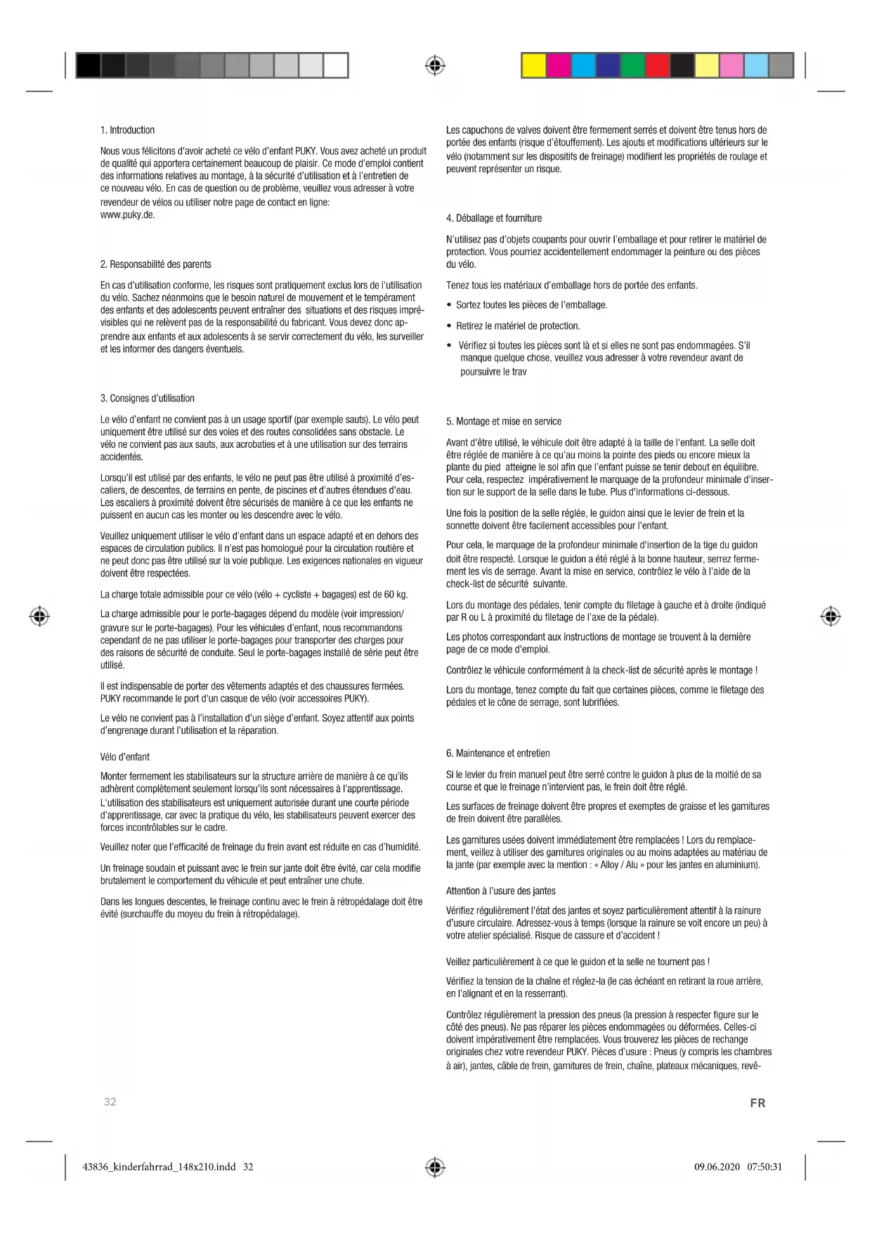 Nous vous félicitons d'avoir acheté ce vélo d’enfant PUKY. Vous avez acheté un produit de qualité qui apportera certainement beaucoup de plaisir. Ce mode d’emploi contient des informations relatives au montage, à la sécurité d’utilisation et à l’entretien de ce nouveau vélo. En cas de question ou de problème, veuillez vous adresser à votre revendeur de vélos ou utiliser notre page de contact en ligne: www.puky.de.