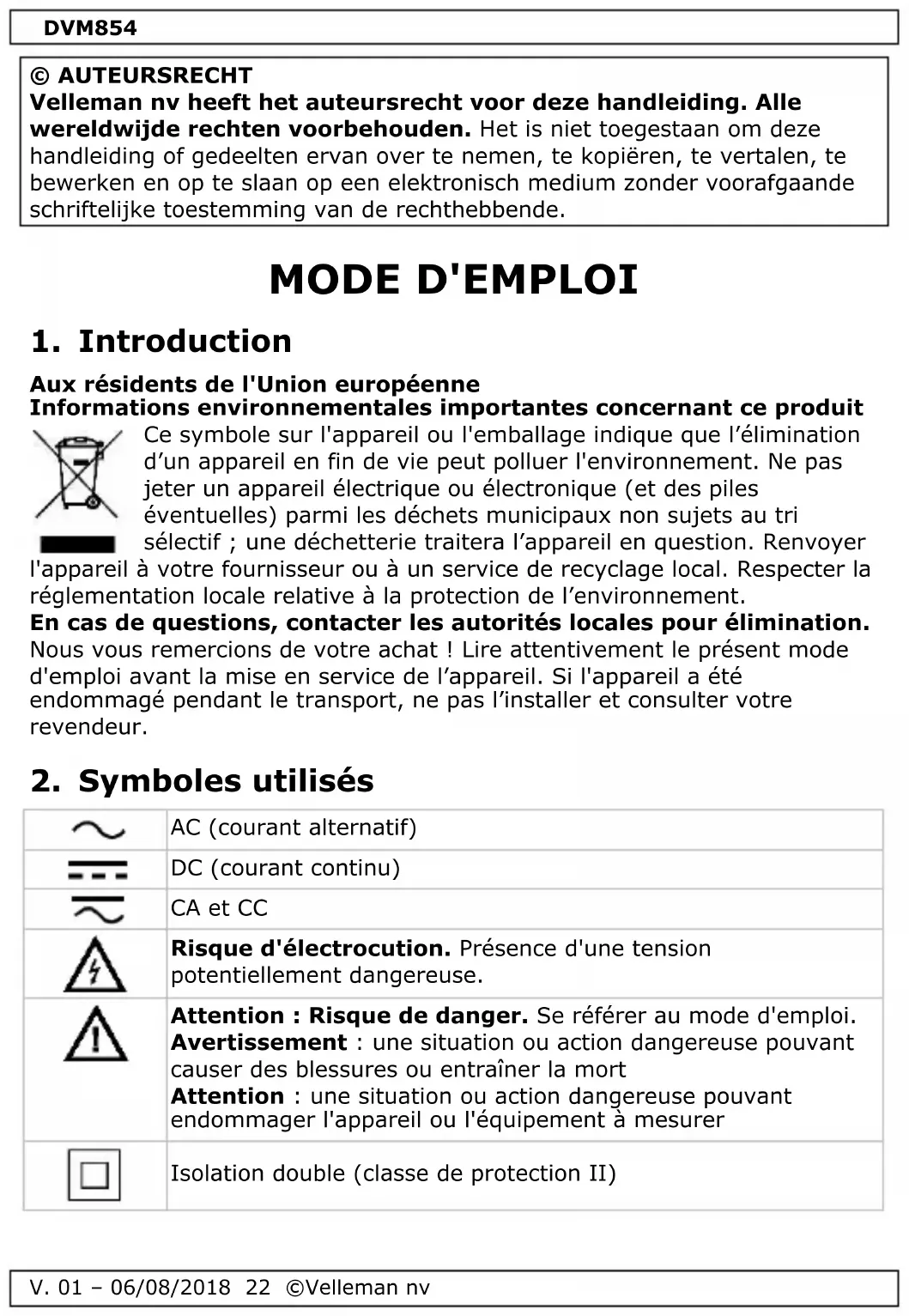 Retrouvez gratuitement la notice de l'appareil DVM854 VELLEMAN au format PDF.