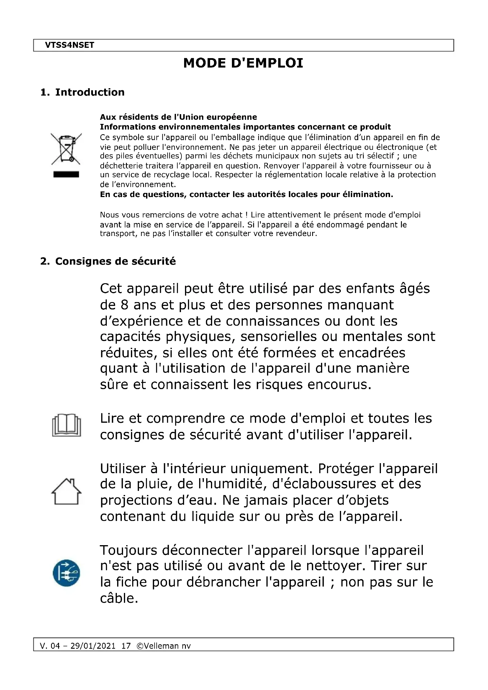 Retrouvez gratuitement la notice de l'appareil VTSS4NSET VELLEMAN au format PDF.