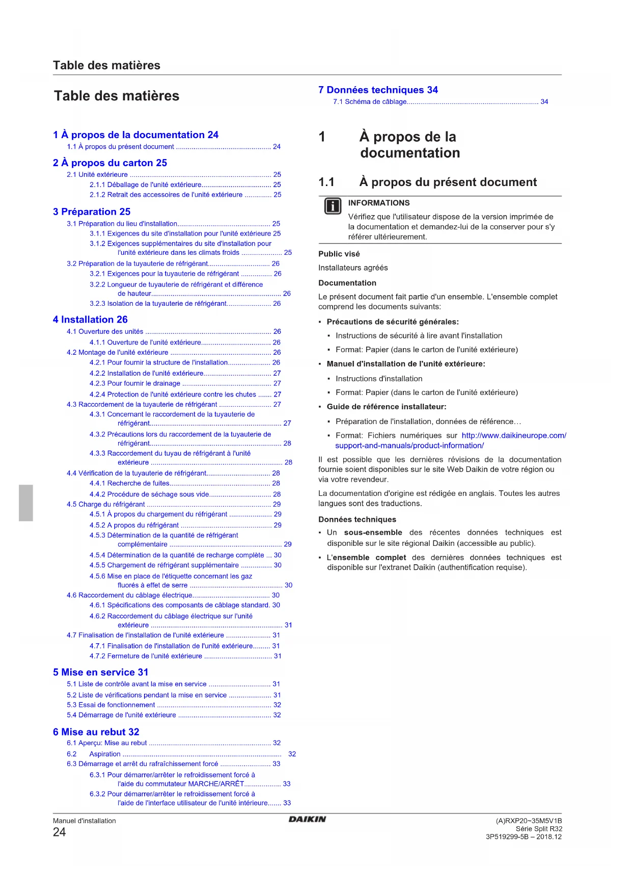 Série Split R32 3P519299-5B – 2018.12 Table des matières 1 À propos de la documentation 24