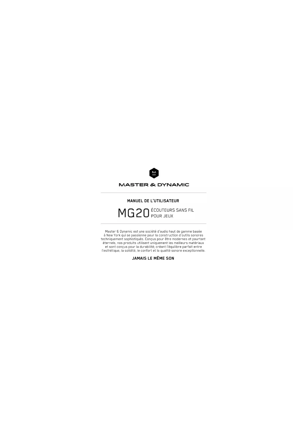 MODE D'EMPLOI MG20 MASTER DYNAMIC