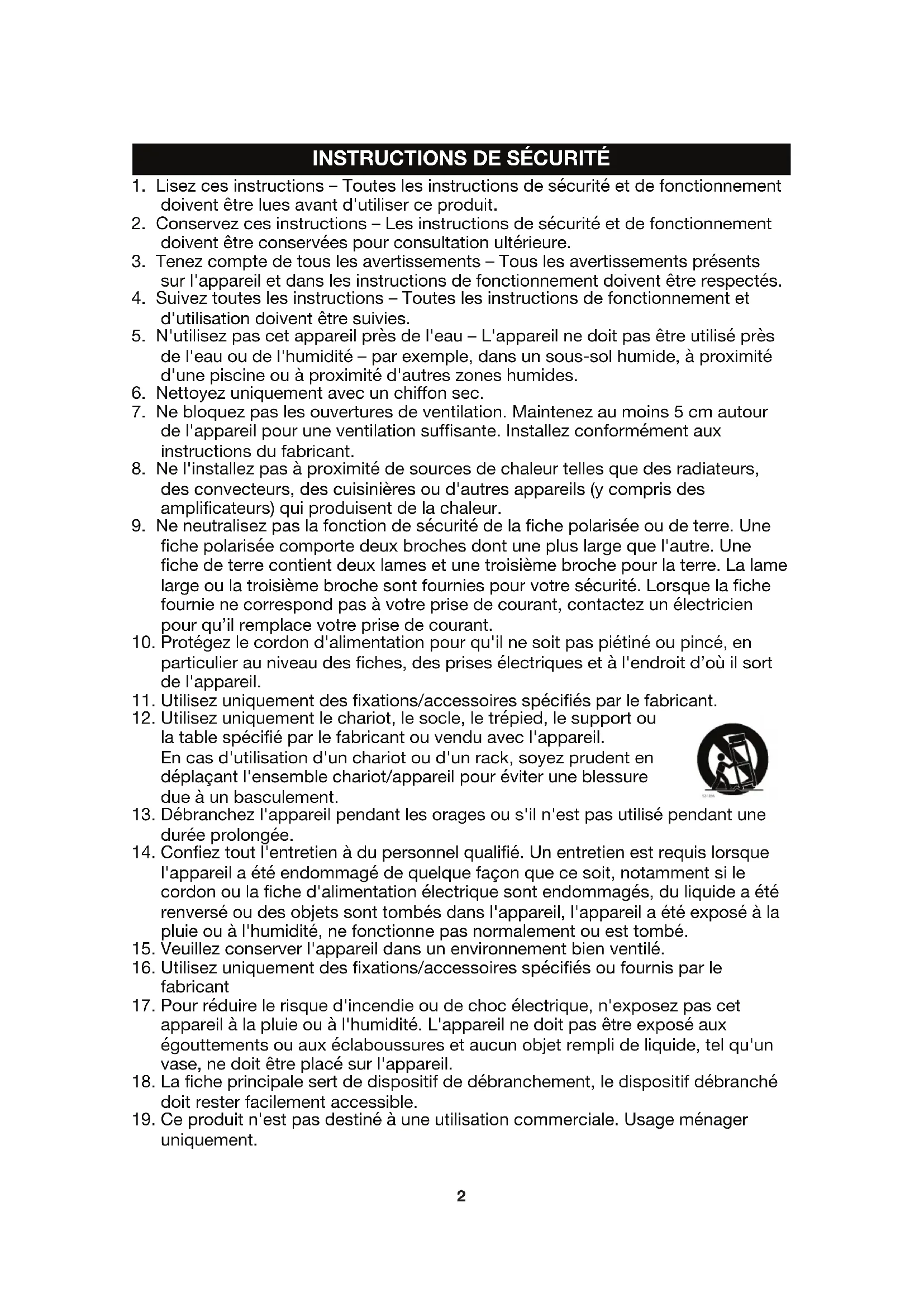2. Conservez ces instructions – Les instructions de sécurité et de fonctionnement