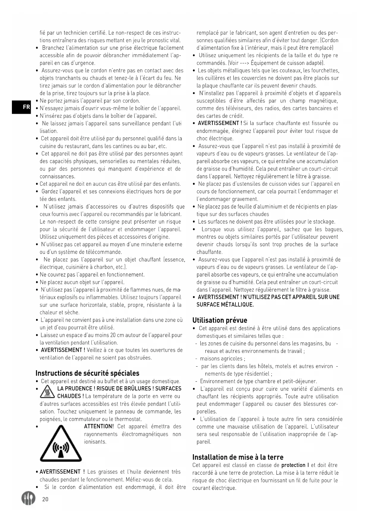 - Cet appareil doit être utilisé par du personnel qualifié dans la cuisine du restaurant, dans les cantines ou au bar, etc.