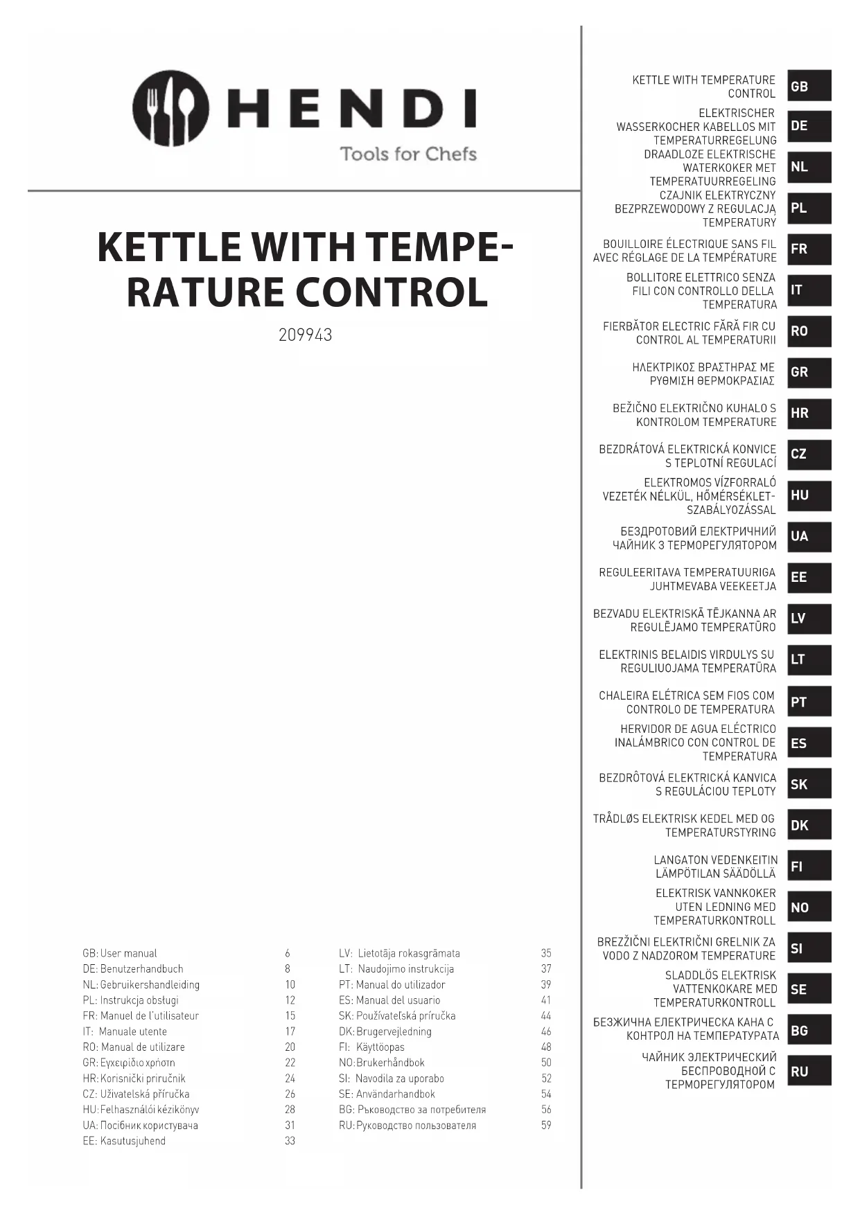 Retrouvez gratuitement la notice de l'appareil 209943 Hendi au format PDF.