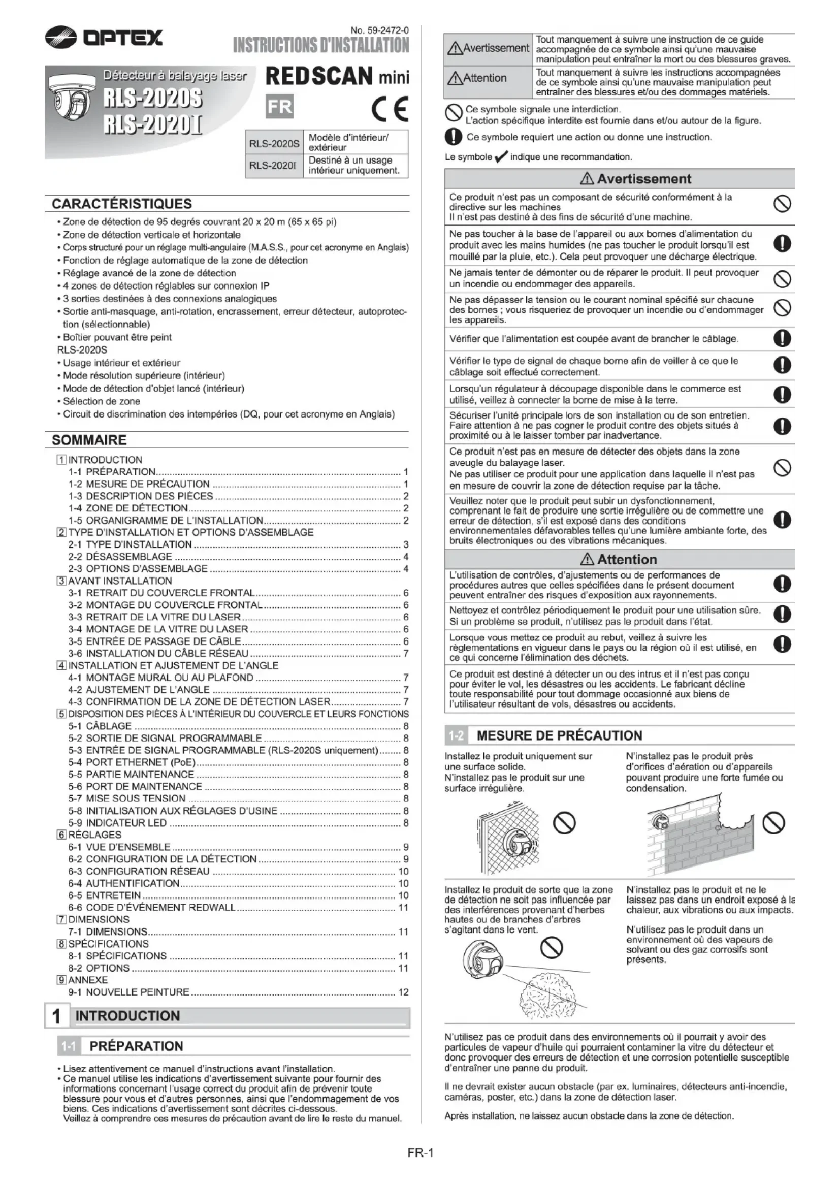 RLS2020S - Détecteur de mouvements OPTEX - Notice d'utilisation et mode d'emploi gratuit