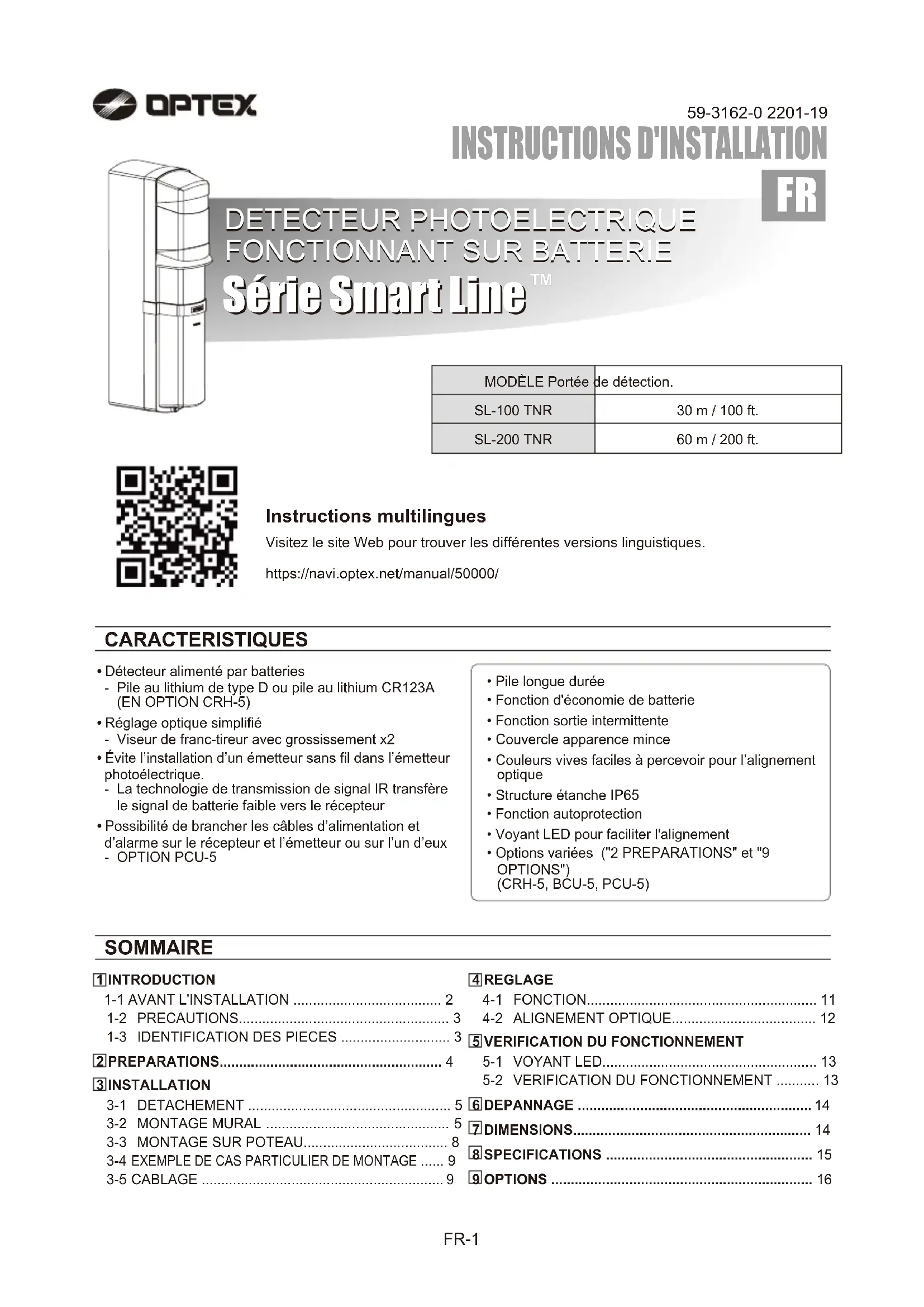 Retrouvez gratuitement la notice de l'appareil SL100TNR OPTEX au format PDF.