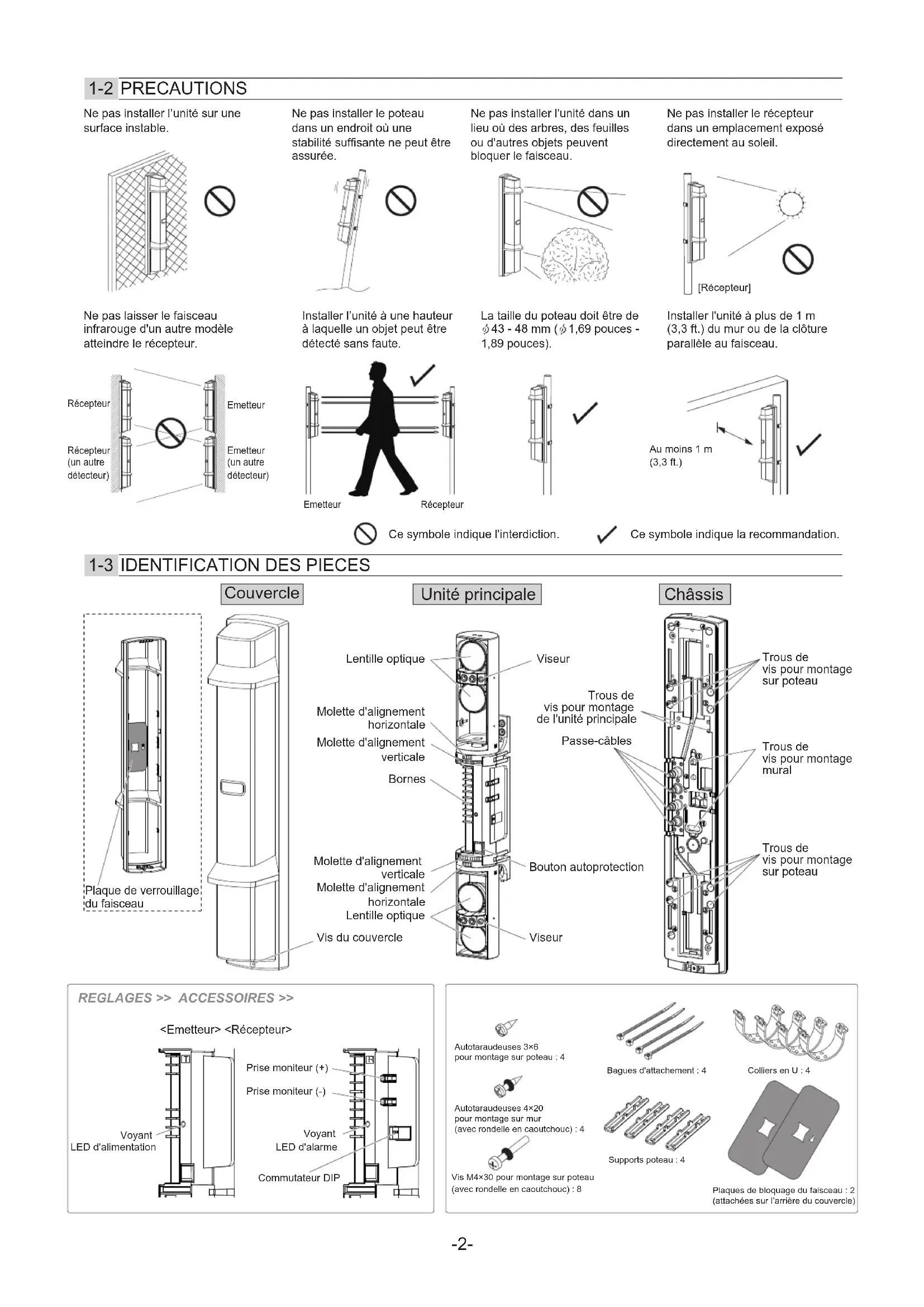 1-1 AVANT L'INSTALLATION 1 1-2 PRECAUTIONS 2 1-3 IDENTIFICATION DES PIECES 2