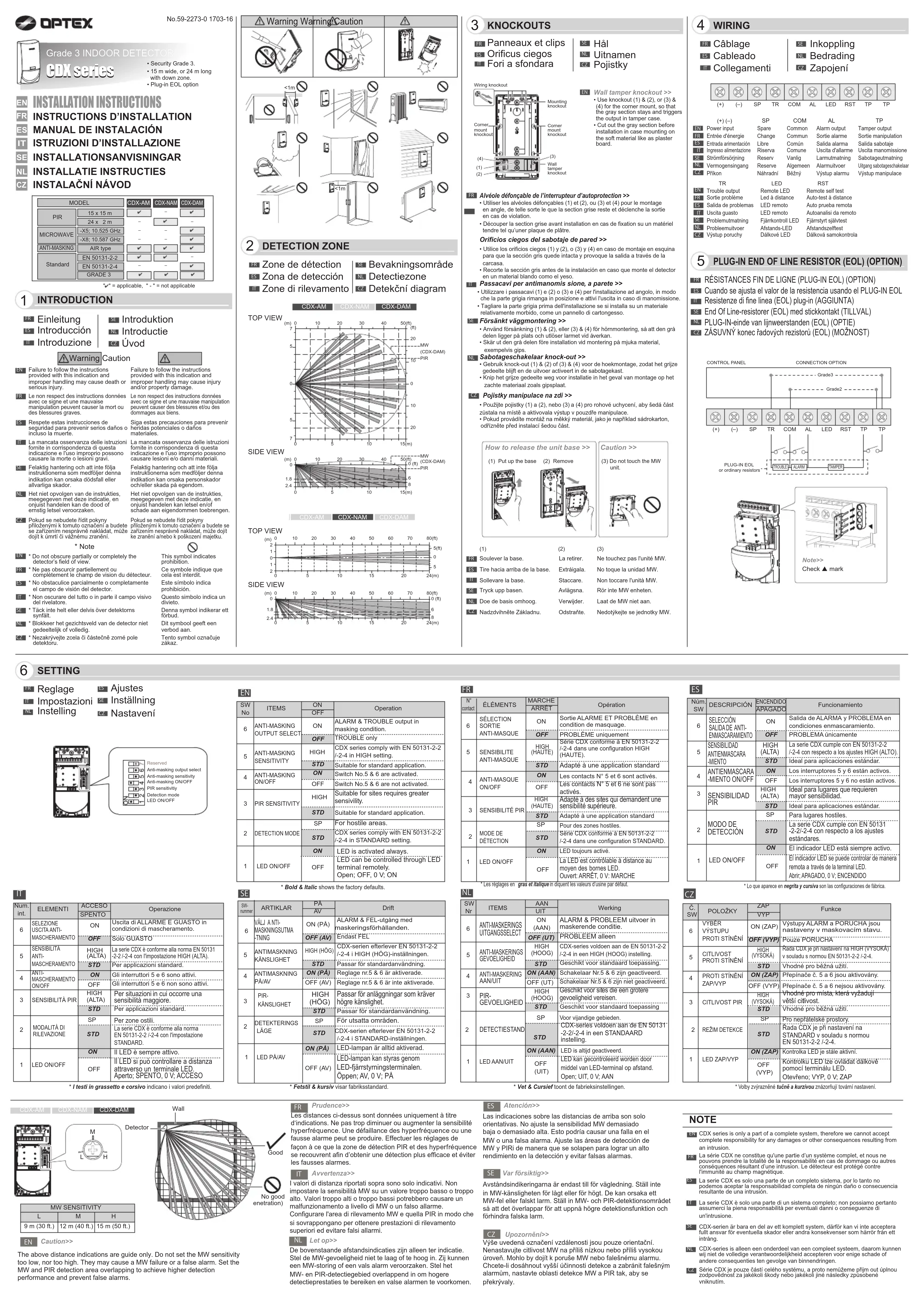 CDXDAM - Détecteur OPTEX - Notice d'utilisation et mode d'emploi gratuit