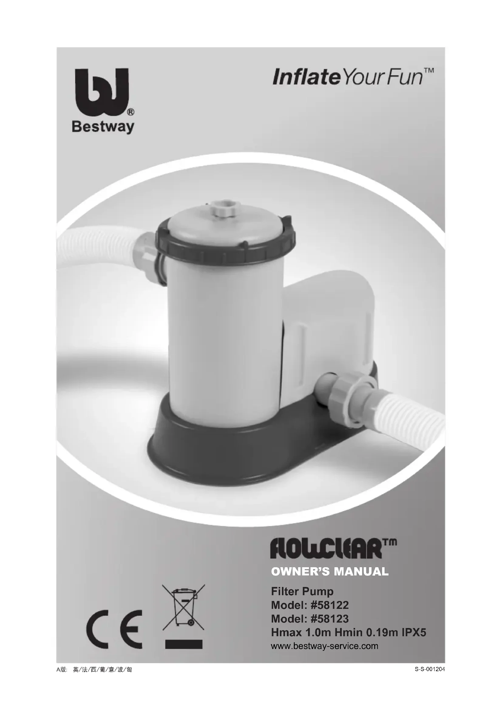 Téléchargez la notice de votre Pompe à eau au format PDF gratuitement ! Retrouvez votre notice Flowclear 58123 - BESTWAY et reprennez votre appareil électronique en main. Sur cette page sont publiés tous les documents nécessaires à l'utilisation de votre appareil Flowclear 58123 de la marque BESTWAY.