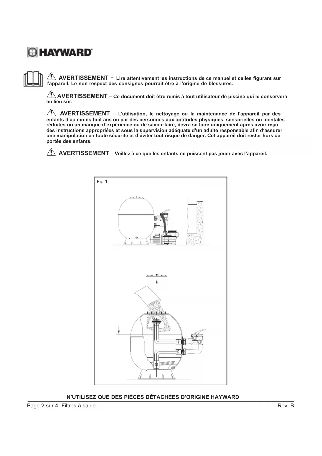 N'UTILISEZ QUE DES PIECES DETACHEES D'ORIGINE HAYWARD