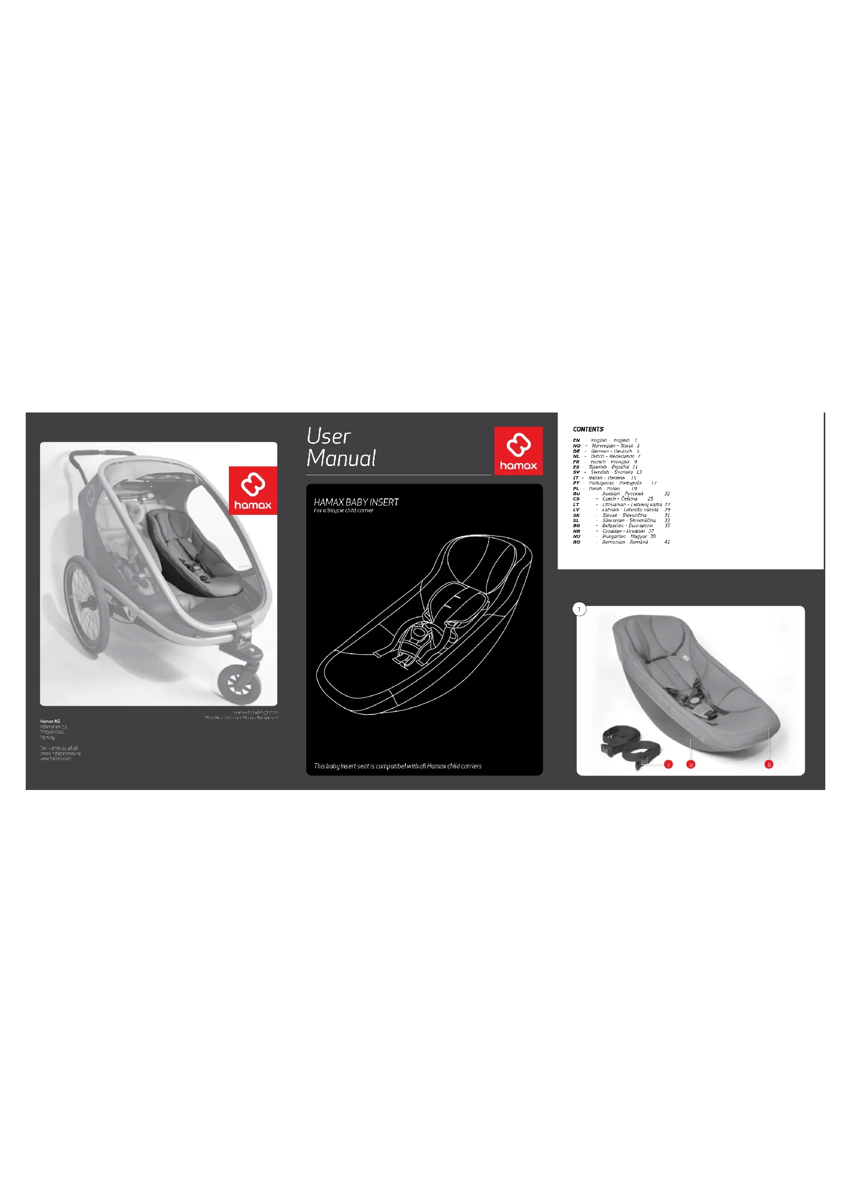 - Ce produit ne doit être utilisé qu’en combinaison avec un siège pour enfants de Hamax. Toute autre utilisation peut entraîner de graves blessures. N’utilisez jamais l’insert de bébé dans une voiture.
