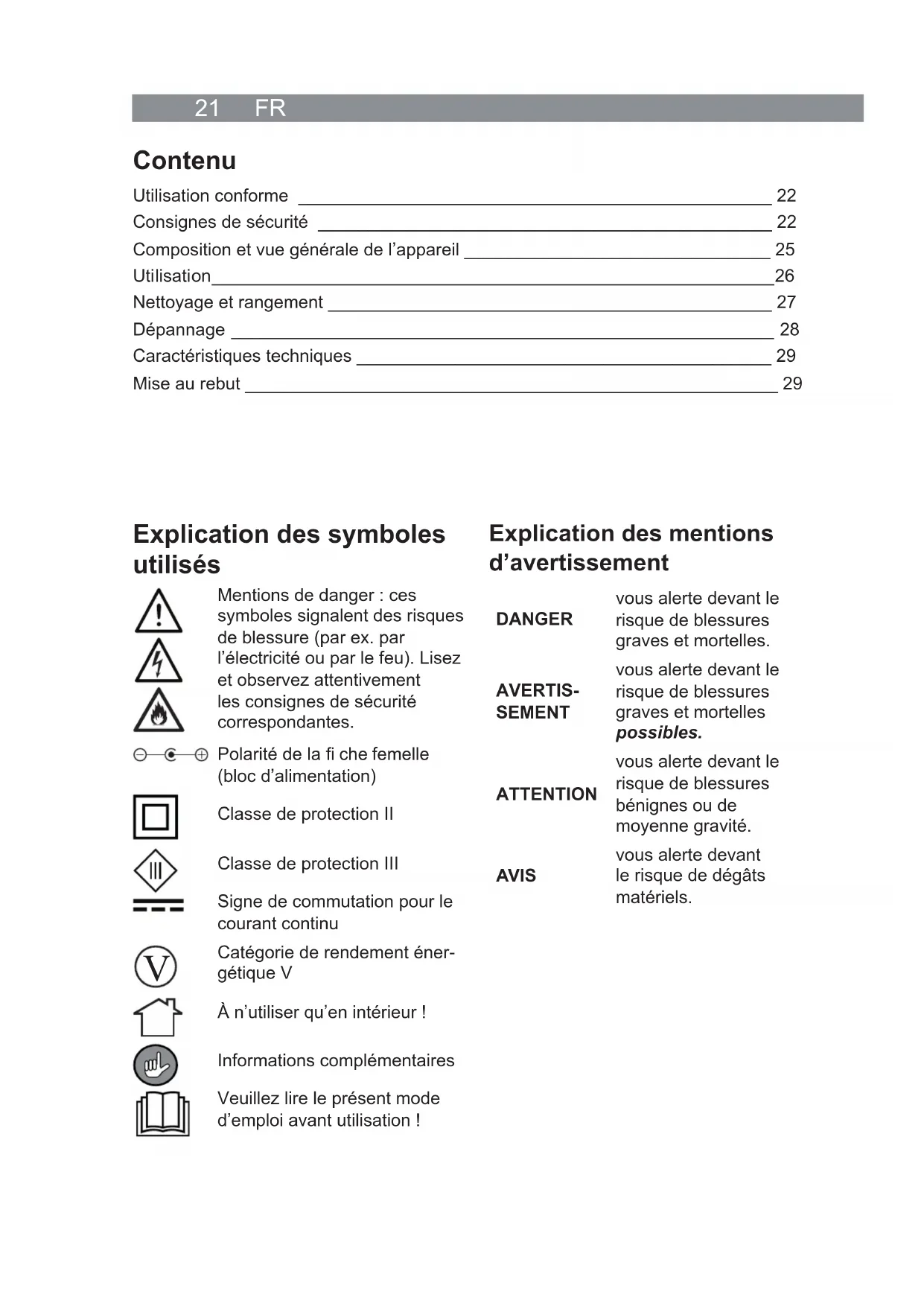 Mode d’emploi à partir de la page 21