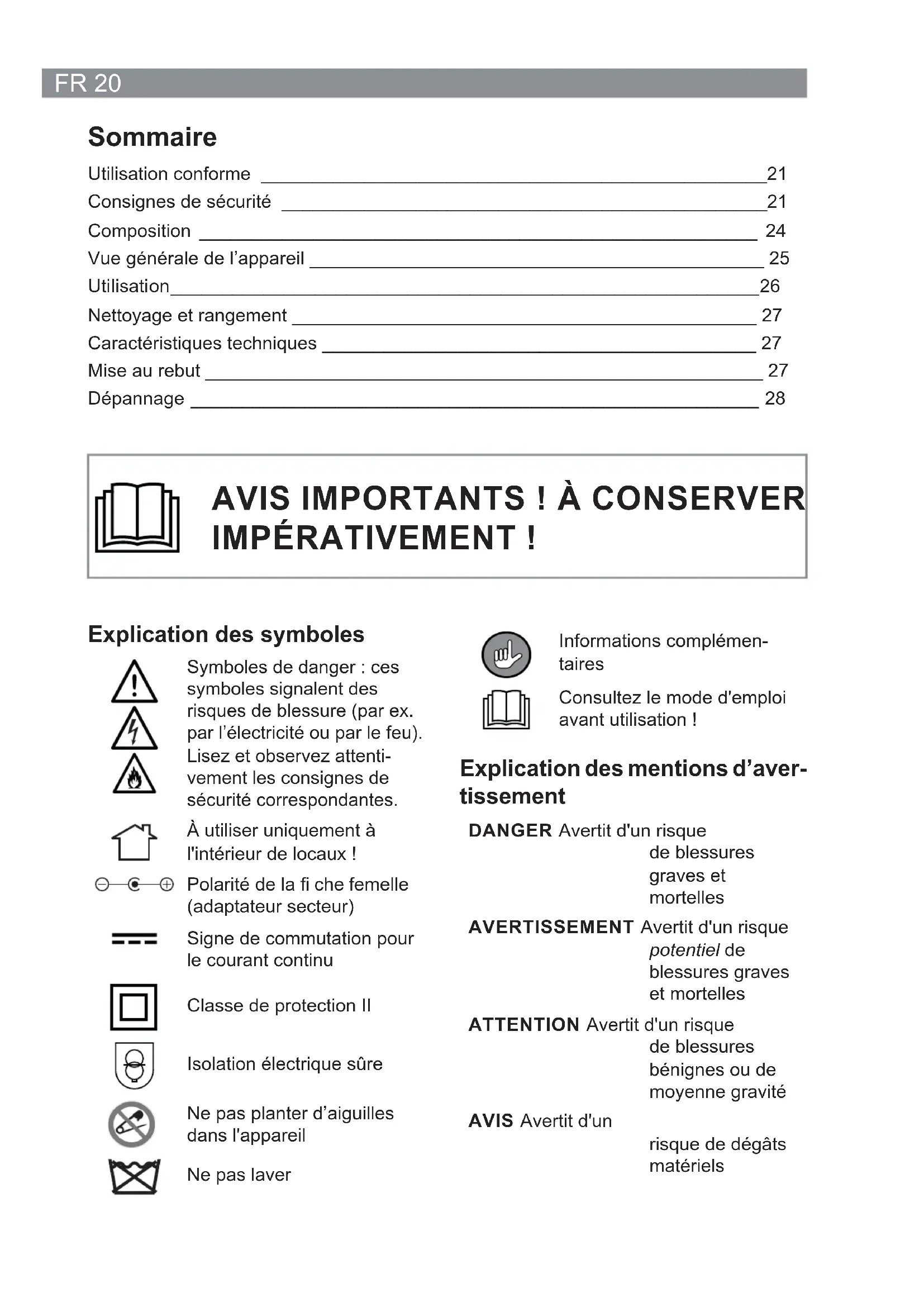 Mode d’emploi à partir de la page 20