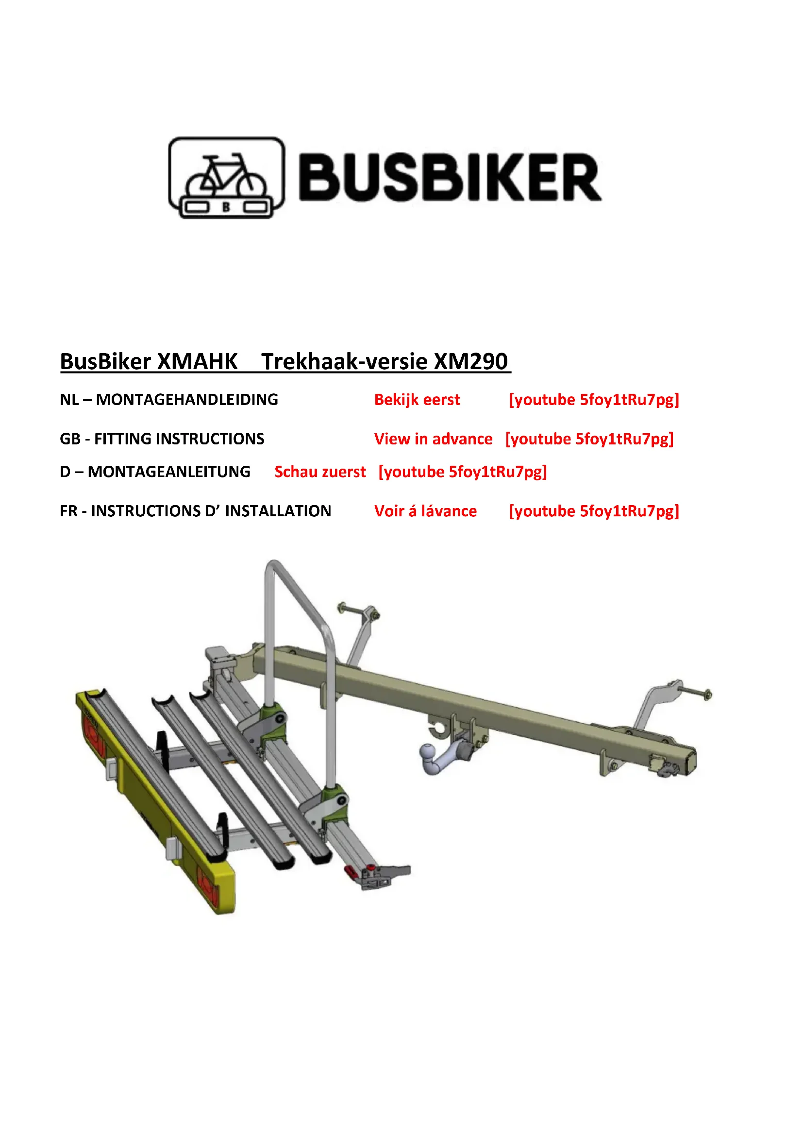 - Aprés installation rangez ce document d’utilisation avec les papiers du véhicule.BusBiker XMAHK Trekhaak-versie XM290 NL – GEBRUIKERSHANDLEIDING