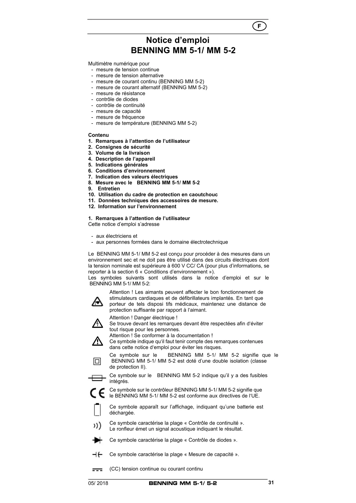 MODE D'EMPLOI MM 52 BENNING