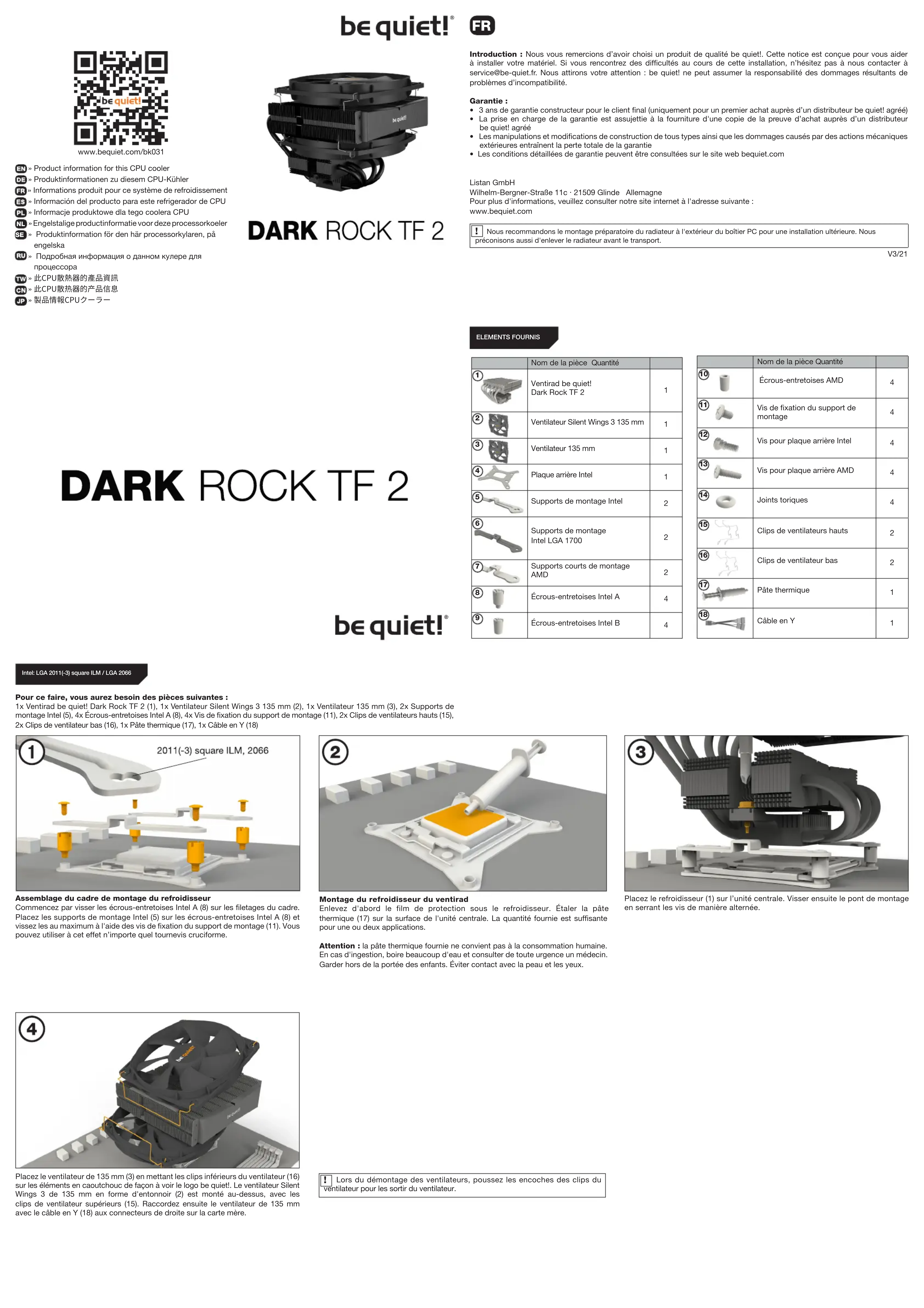 - Les conditions détaillées de garantie peuvent être consultées sur le site web bequiet.com Listan GmbH Wilhelm-Bergner-Straße 11c