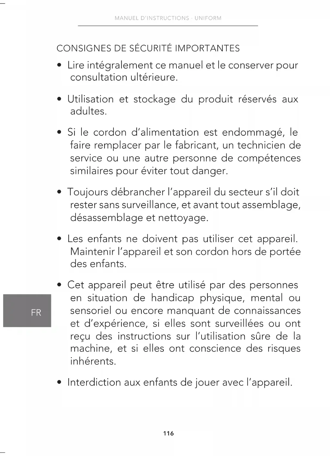 - Interdiction aux enfants de jouer avec l’appareil.117