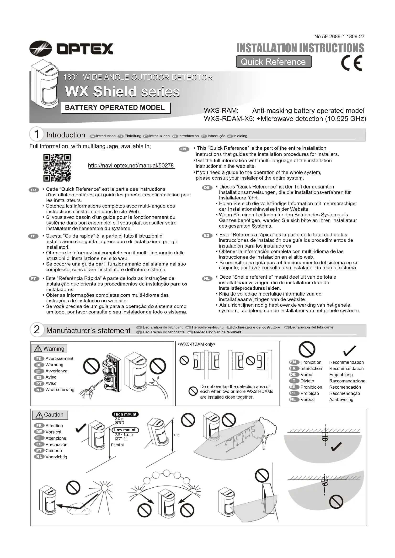 Retrouvez gratuitement la notice de l'appareil WXSMW OPTEX au format PDF.