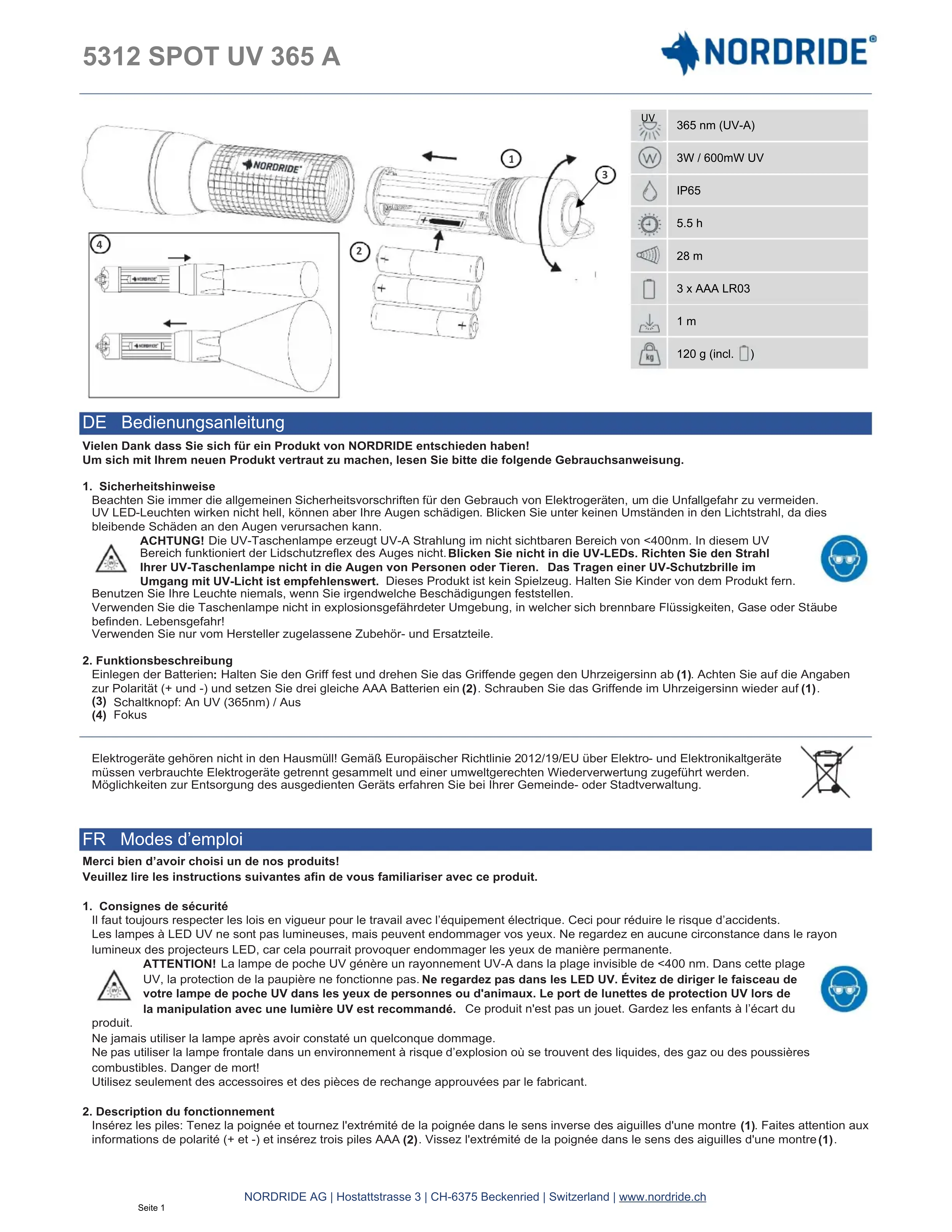 5313 Spot UV 365 A Set - Lampe de poche Nordride - Notice d'utilisation et mode d'emploi gratuit