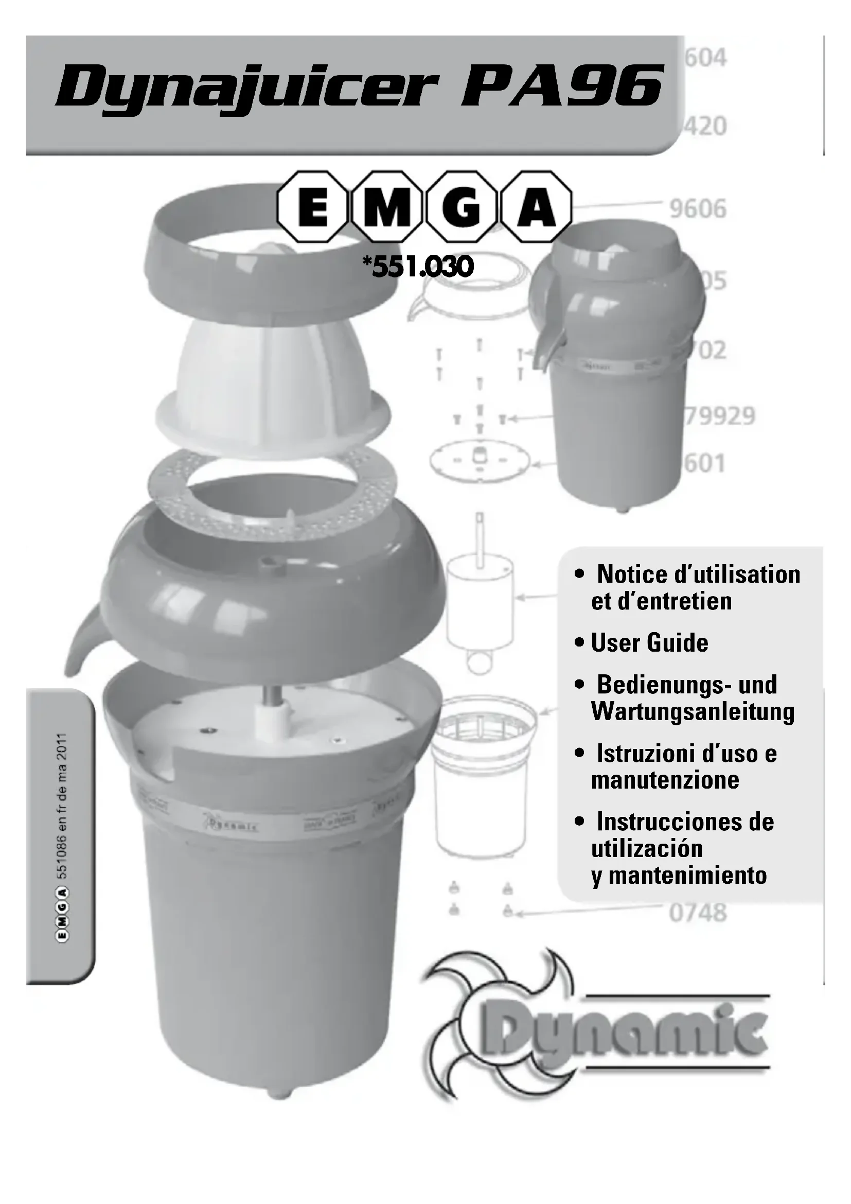 Retrouvez gratuitement la notice de l'appareil Dynajuicer PA96 Dynamic au format PDF.