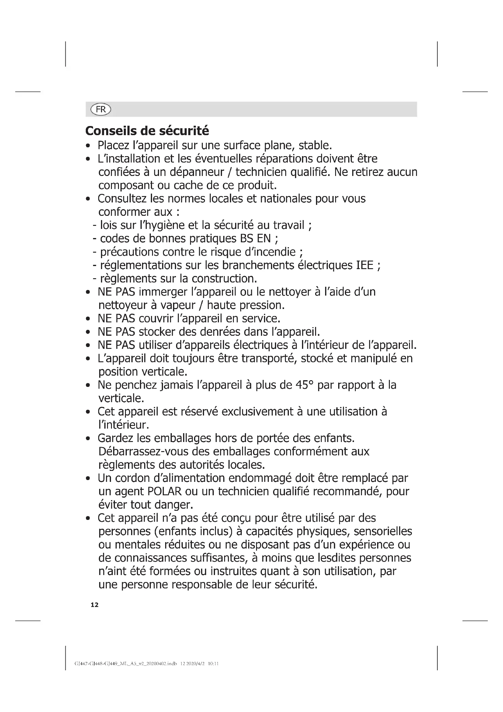 - Toute réparation doit être confiée à un agent POLAR ou à un technicien qualifié. GJ447-GJ448-GJ449_ML_A5_v2_20200402.indb 14 2020/4/2 10:1115