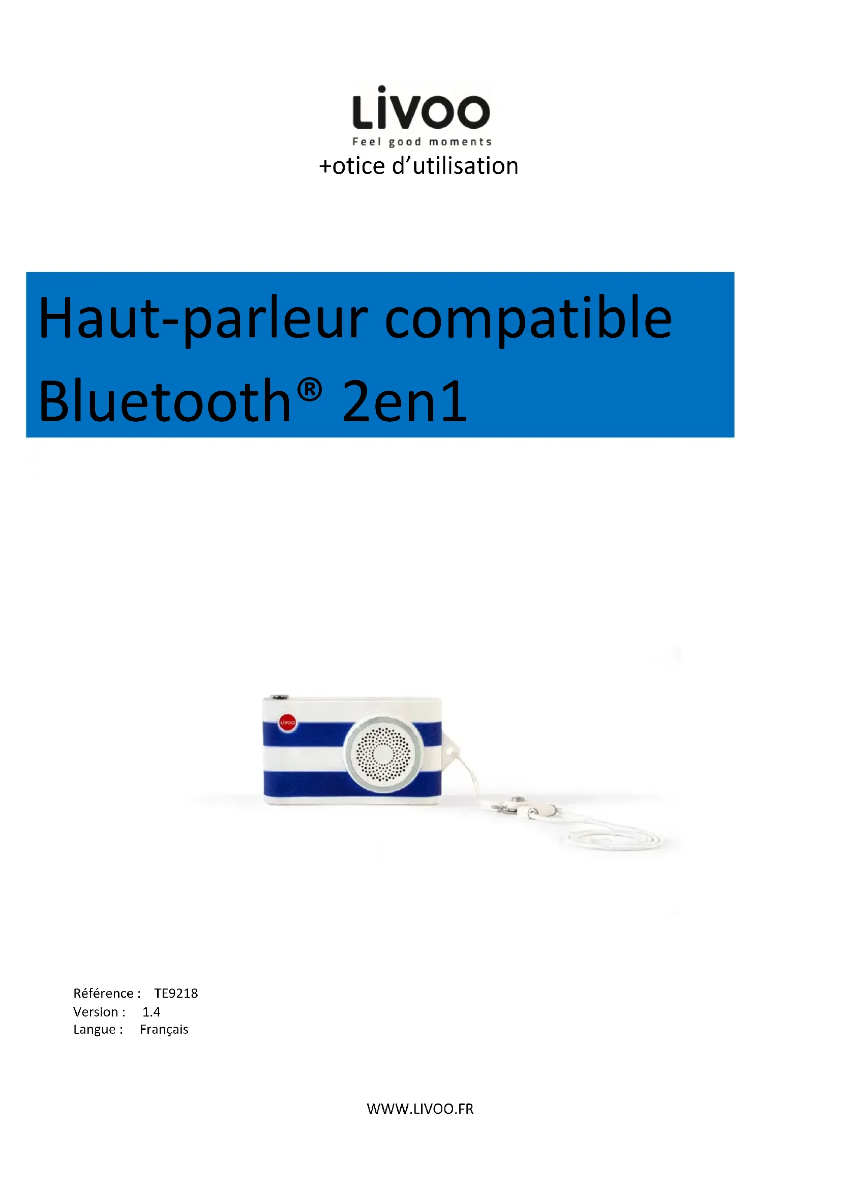 TES218 - Haut-parleur LIVOO - Notice d'utilisation et mode d'emploi gratuit