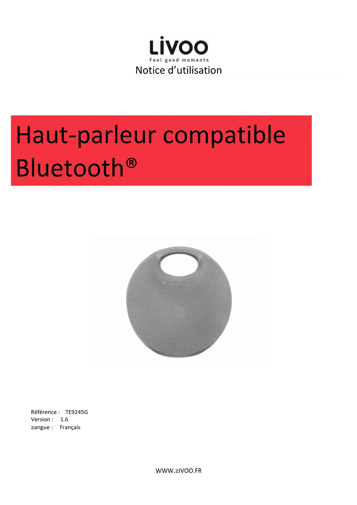 TES245G - Haut-parleur LIVOO - Notice d'utilisation et mode d'emploi gratuit