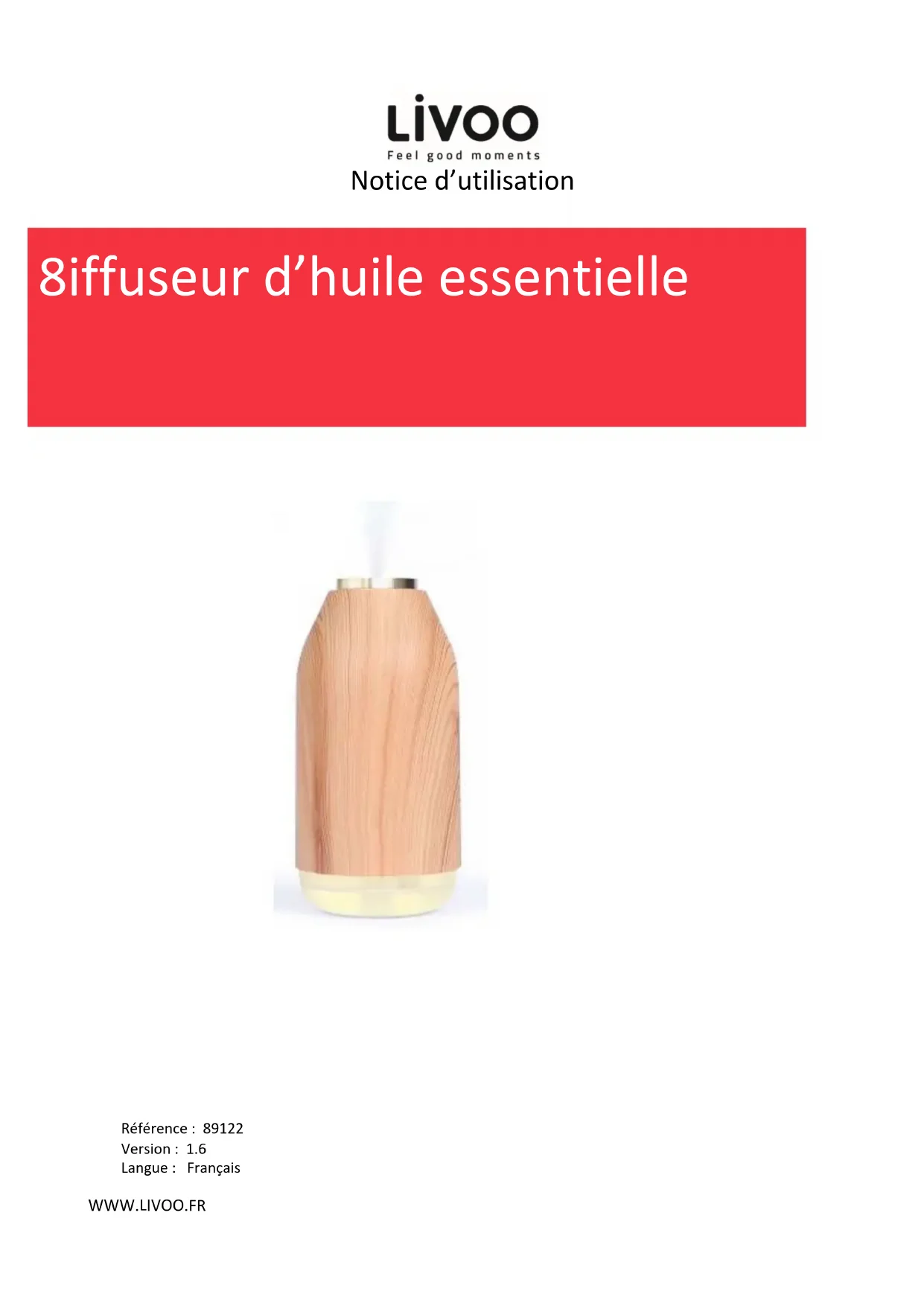 DE122 - Humidificateur LIVOO - Notice d'utilisation et mode d'emploi gratuit