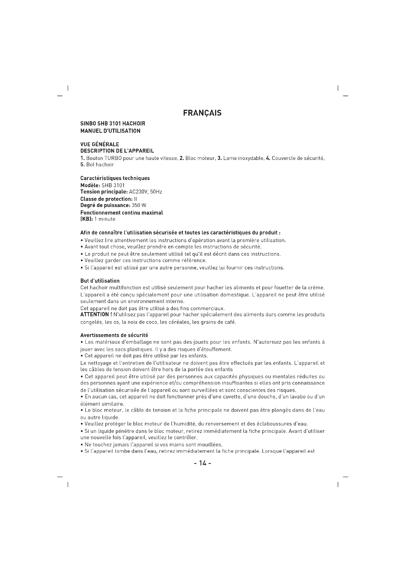 Retrouvez gratuitement la notice de l'appareil SHB 3101 SINBO au format PDF.