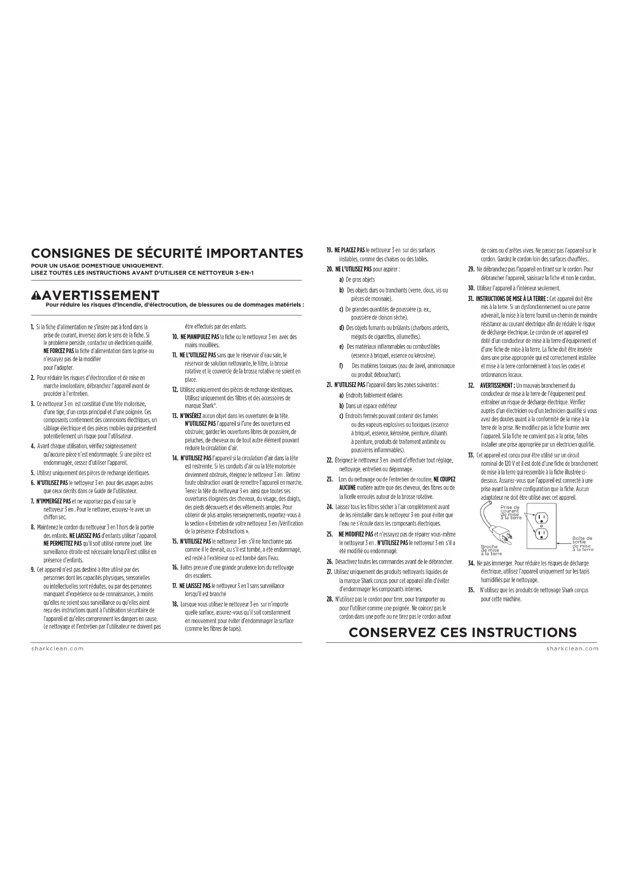 registeryourshark.com sharkclean.com sharkclean.com1. Si la fiche d’alimentation ne s’insère pas à fond dans la prise de courant, inversez alors le sens de la fiche. Si le problème persiste, contactez un électricien qualifié. NE FORCEZ PAS la fiche d’alimentation dans la prise ou n’essayez pas de la modifier pour l’adapter.