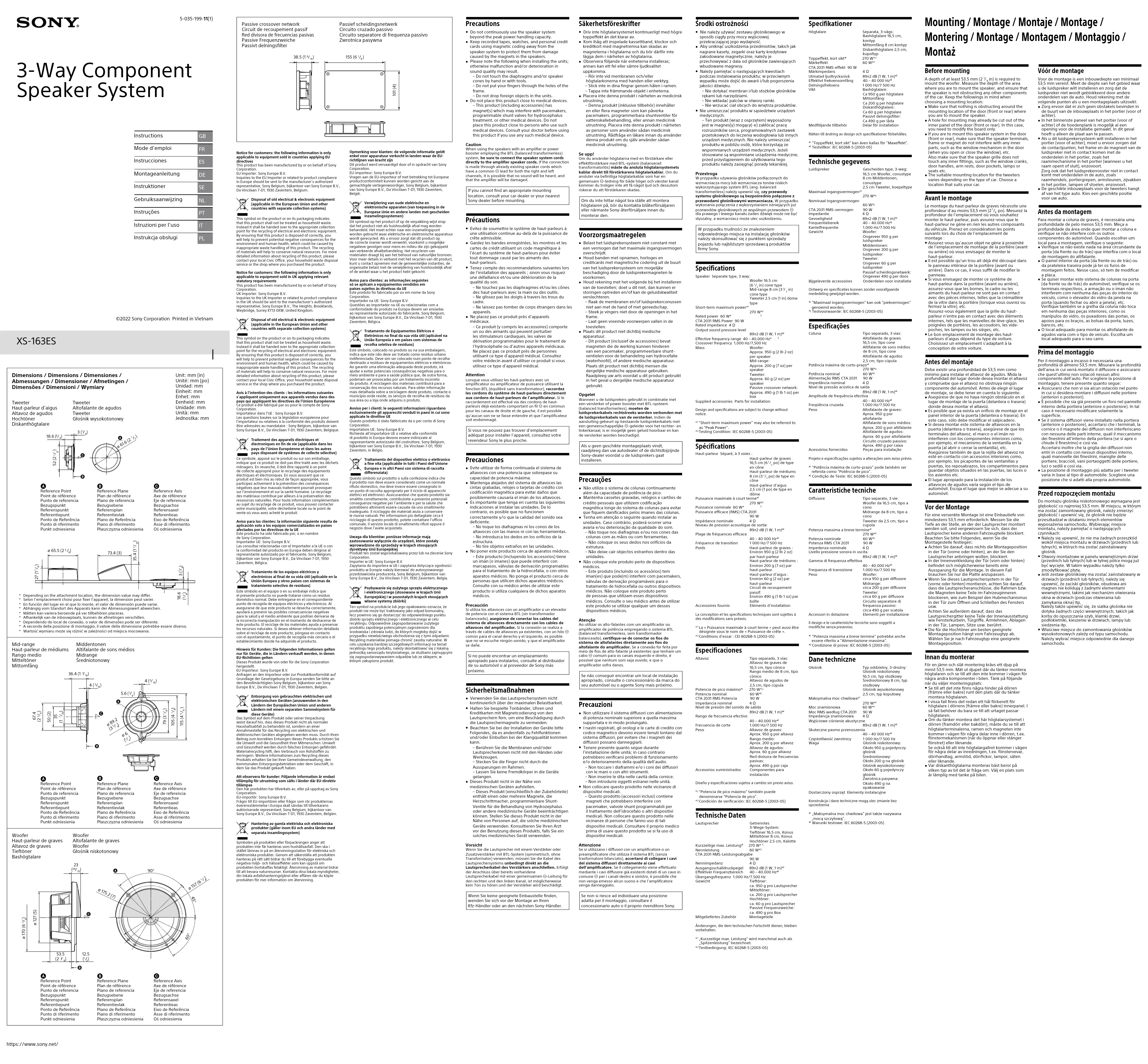 Téléchargez la notice de votre Haut-parleur de voiture au format PDF gratuitement ! Retrouvez votre notice XS163ES - SONY et reprennez votre appareil électronique en main. Sur cette page sont publiés tous les documents nécessaires à l'utilisation de votre appareil XS163ES de la marque SONY.