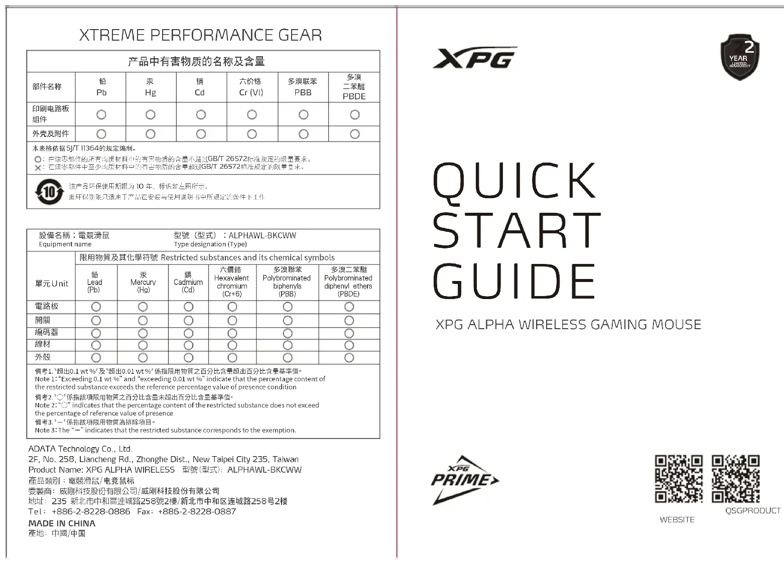 Pour les questions fréquemment posées, des informations supplémentaires et des instructions de service, veillez consulter la page ci-dessus http://www.xpg.com