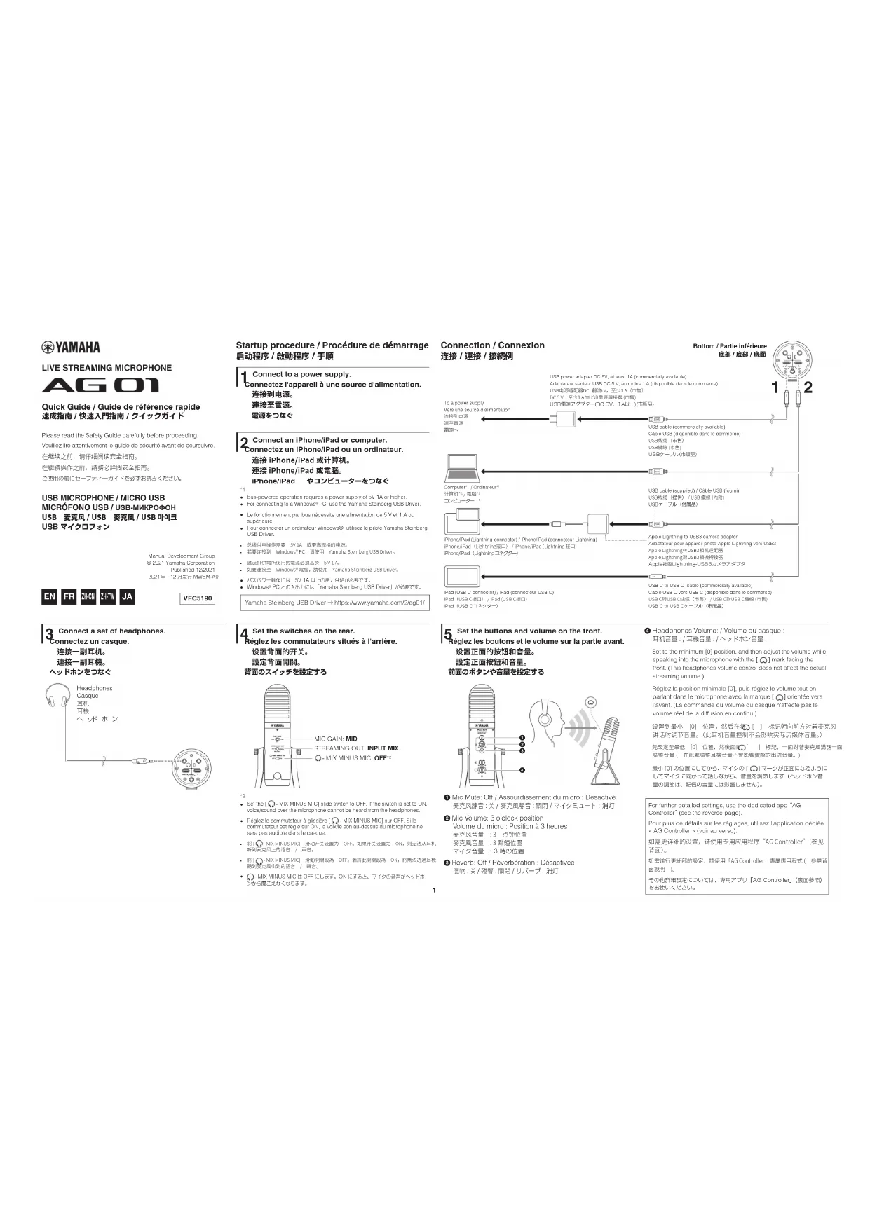 AG01 - Microphone YAMAHA - Notice d'utilisation et mode d'emploi gratuit