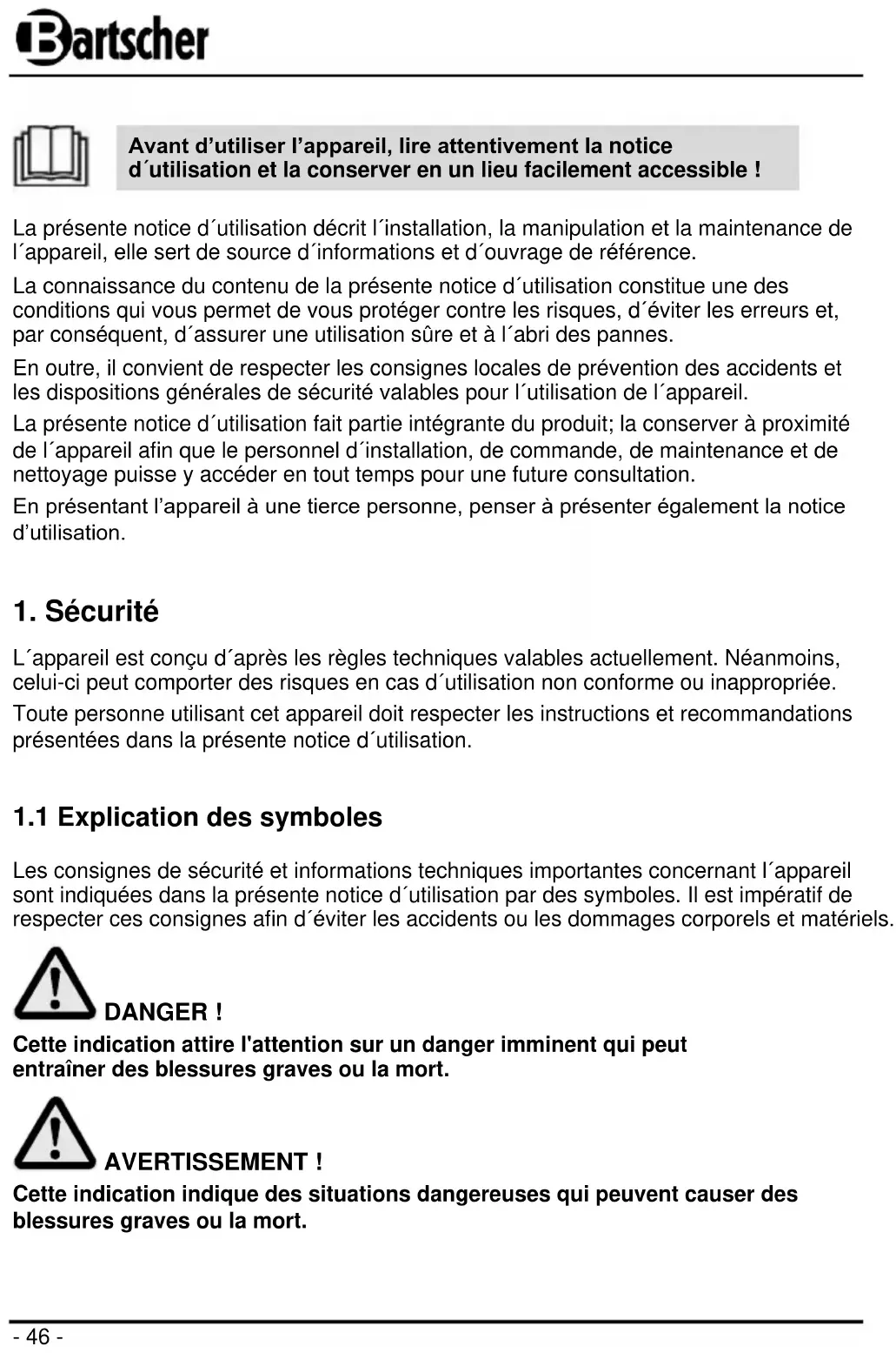 Retrouvez gratuitement la notice de l'appareil PRO II 60T BARTSCHER au format PDF.