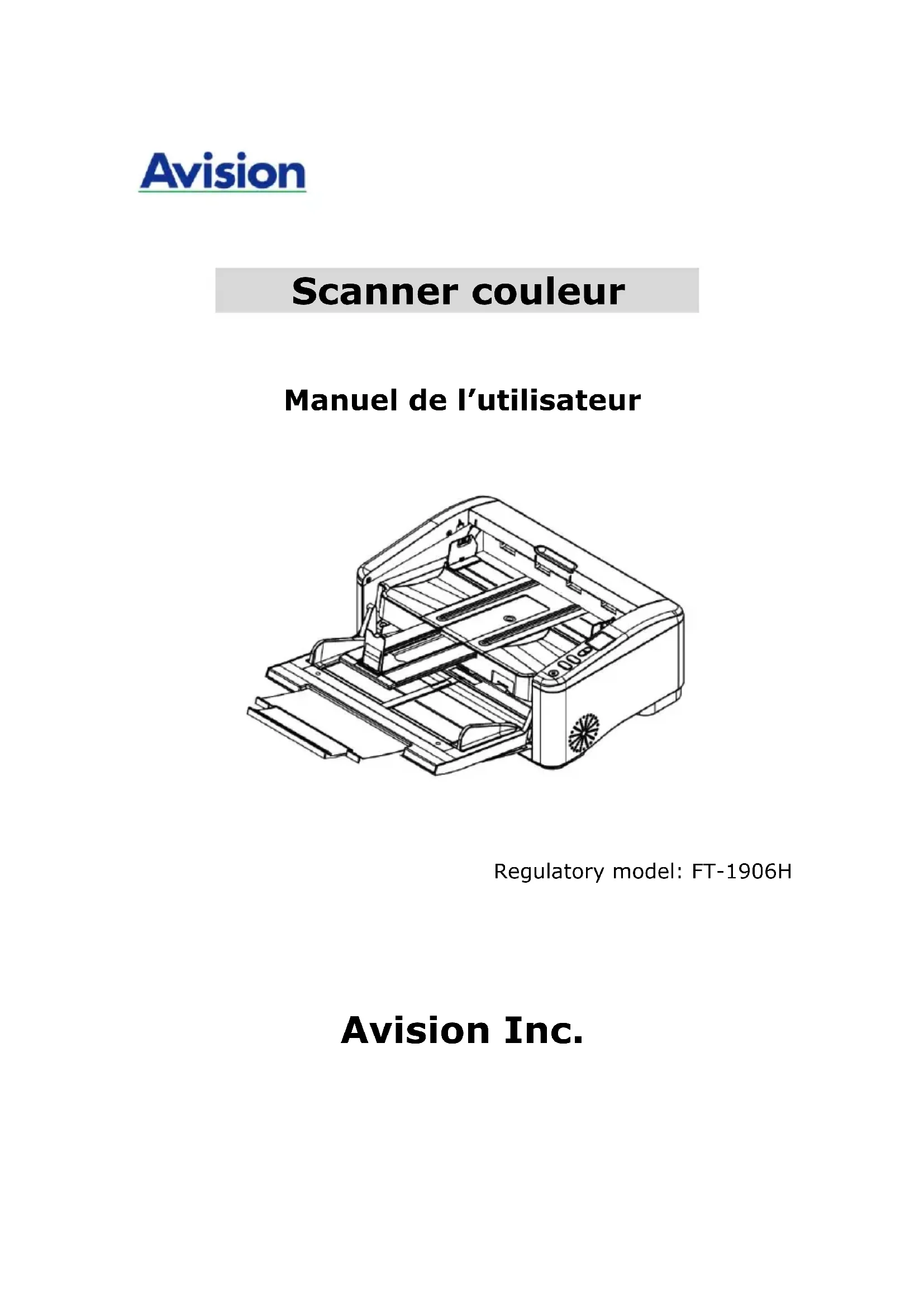 Toutes les spécifications peuvent changer sans préavis. Pour les spécifications les plus à jour et les plus détaillées, veuillez vous référer à notre site Web http://www.avision.com Model Number: FT-1906H Résolution optique: Jusqu’à 600 ppp Modes: Noir & blanc / Gris / Couleurs Alimentation: Dispositif d’auto-alimentation (ADF) Capacité ADF: Jusqu’à 150 pages (80 g/m