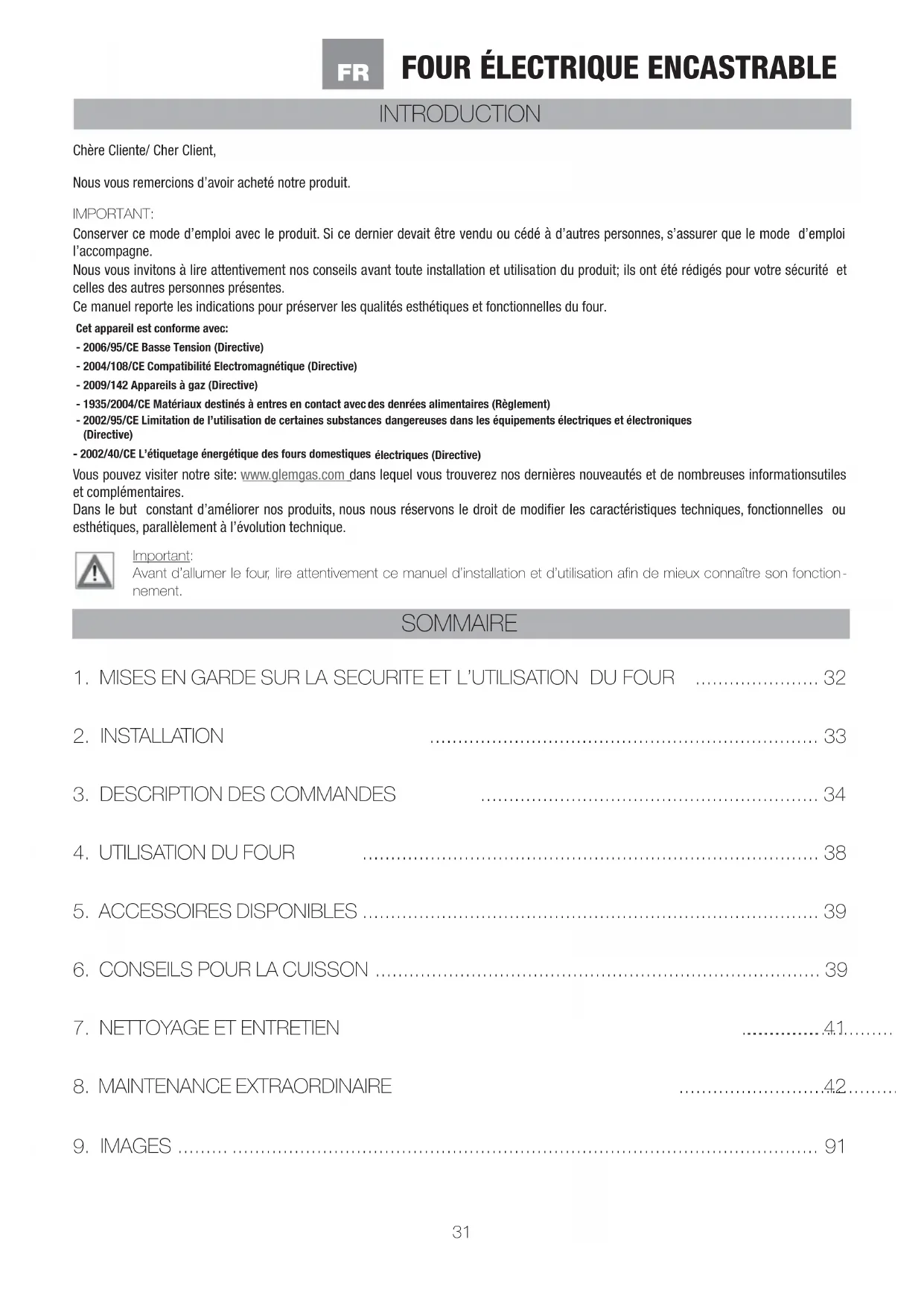 - MISES EN GARDE SUR LA SÉCURITÉ ET L'UTILISATION DU FOUR 32