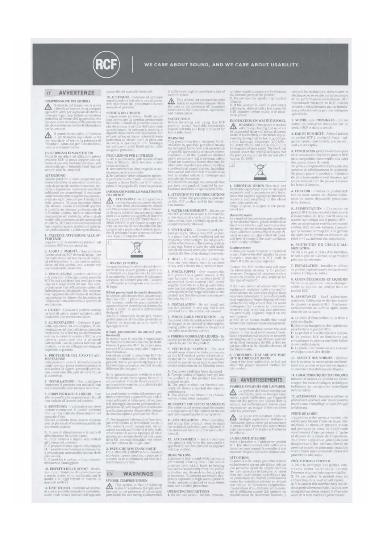 mani/,re adaptee, en utilisant son emballagc d'oritrine. RCF SpA ne scru pas tenut• rcsponsable des eventuels dommagcs apparus !ors !'expedition des suites d'un cmballab'C inadaple