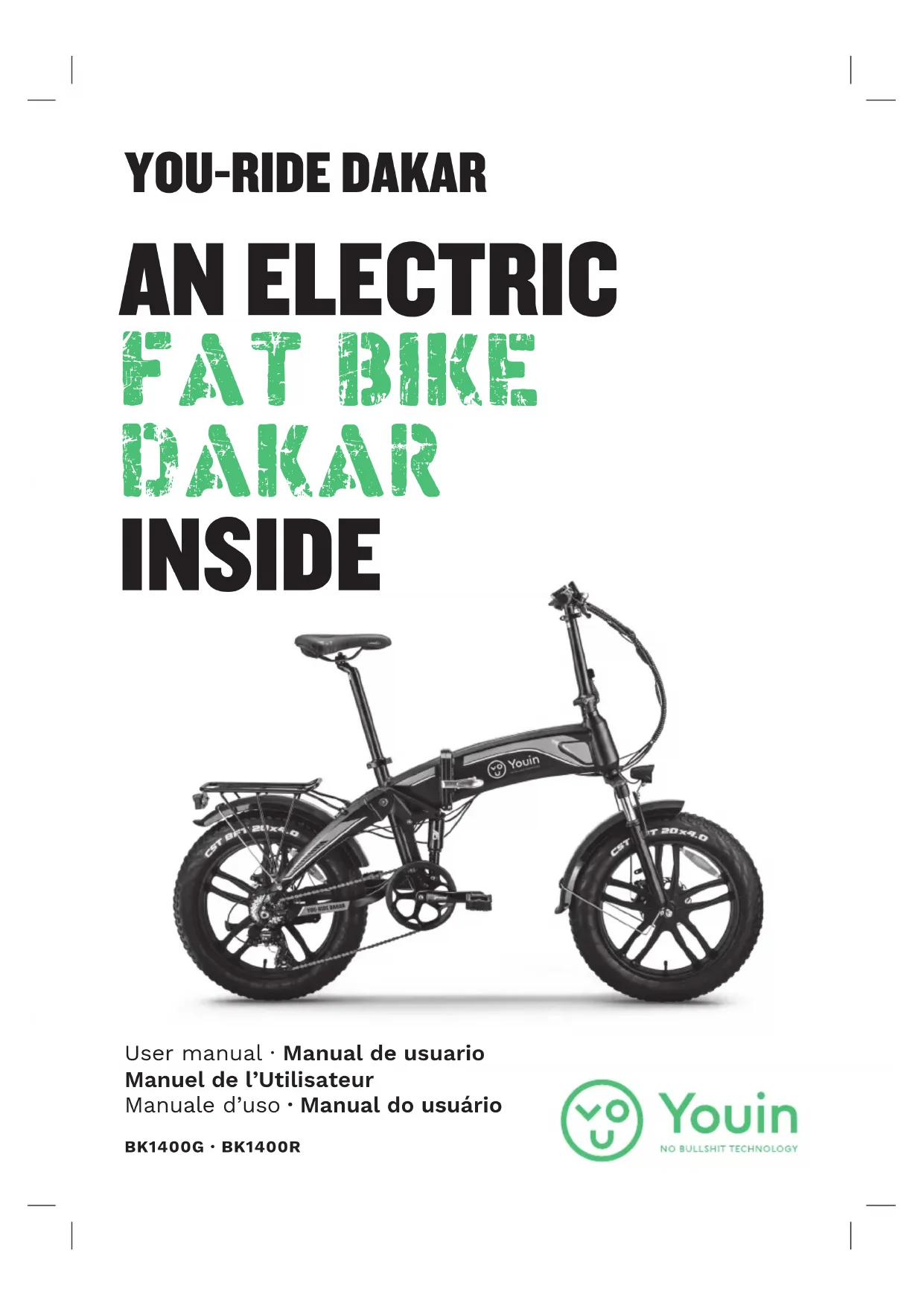- YOUmove YOUup YOUdown YOUfold YOUtravel YOUrule Merci d’avoir choisi notre produit. Amusez-vous avec cette vélo électrique. Les images peuvent diérer de la version finale du produit YOU-RIDE DAKAR23 FRANÇAIS Assemblage de vélo Déployez le produit p. 24