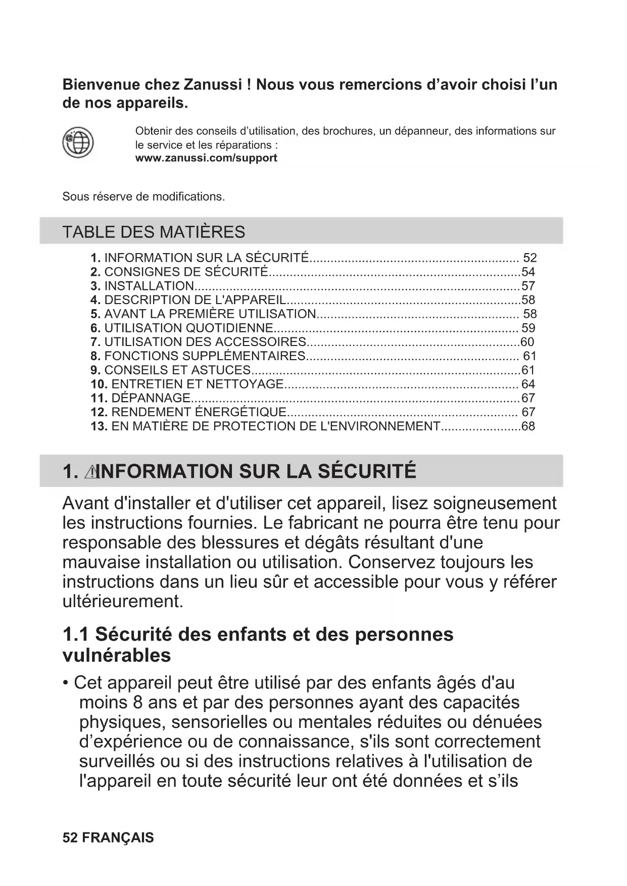 FOIRE AUX QUESTIONS - ZOHNB0X2 ZANUSSI