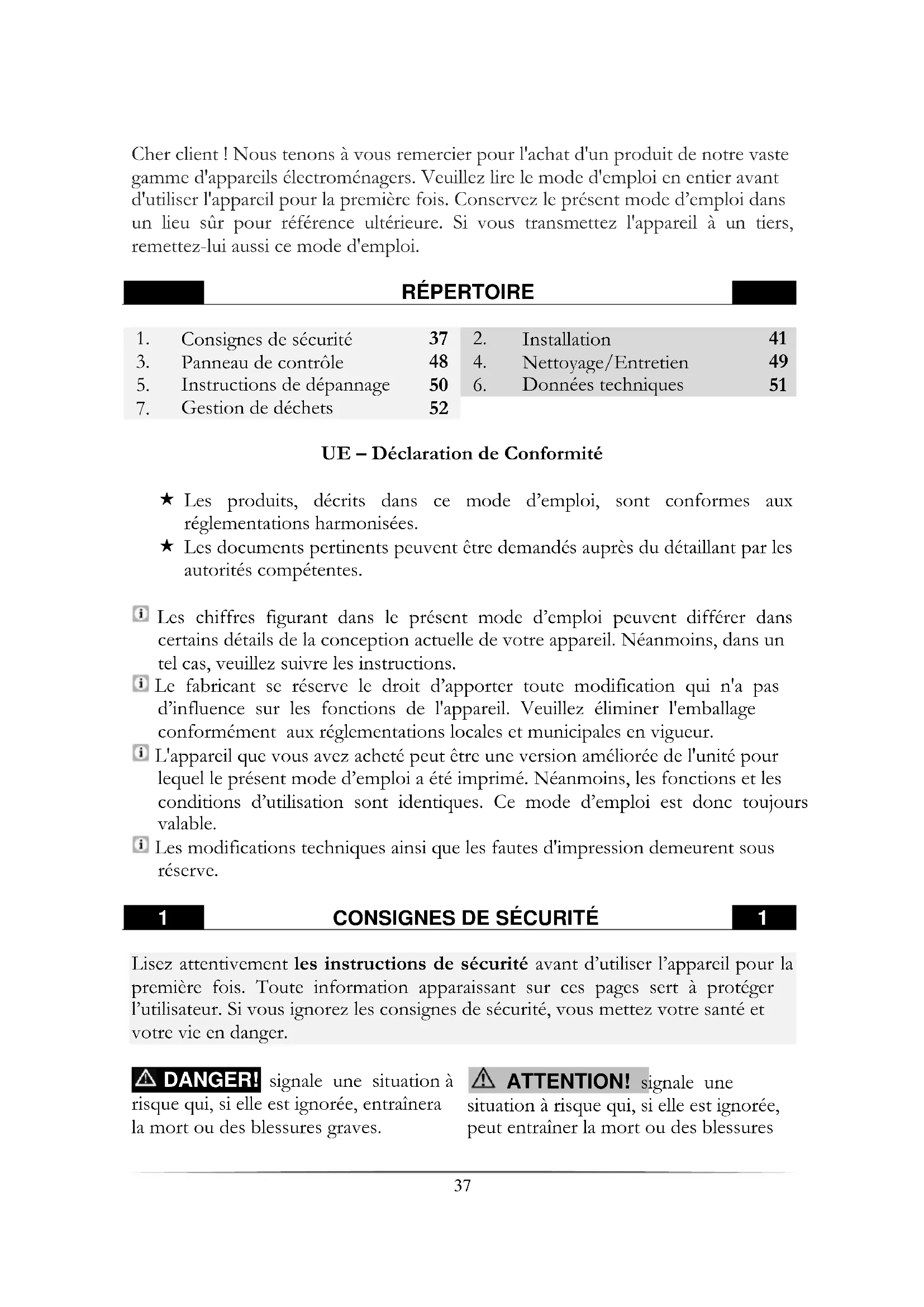 - Consignes de sécurité 37