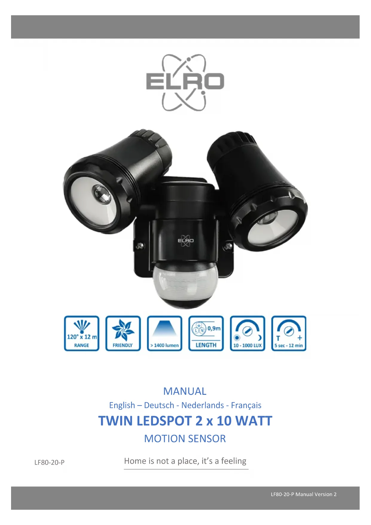 LF8020P - Éclairage ELRO - Notice d'utilisation et mode d'emploi gratuit