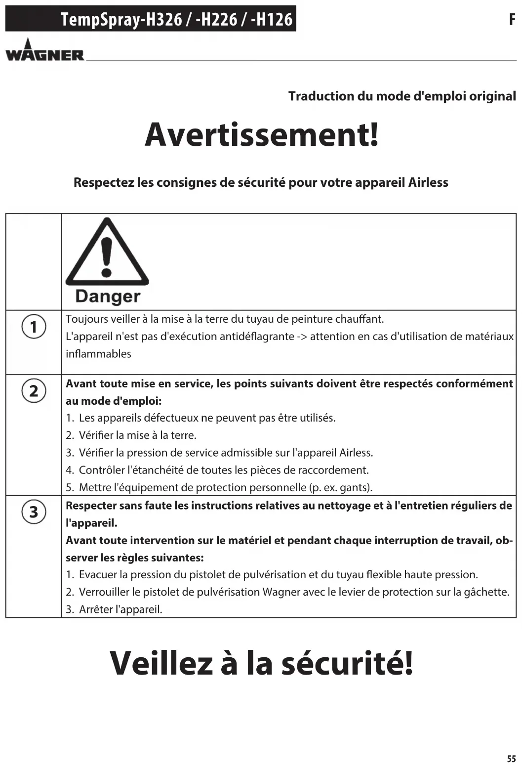 Veillez à la sécurité! Traduction du mode d'emploi original56 TempSpray-H326 / -H226 / -H126