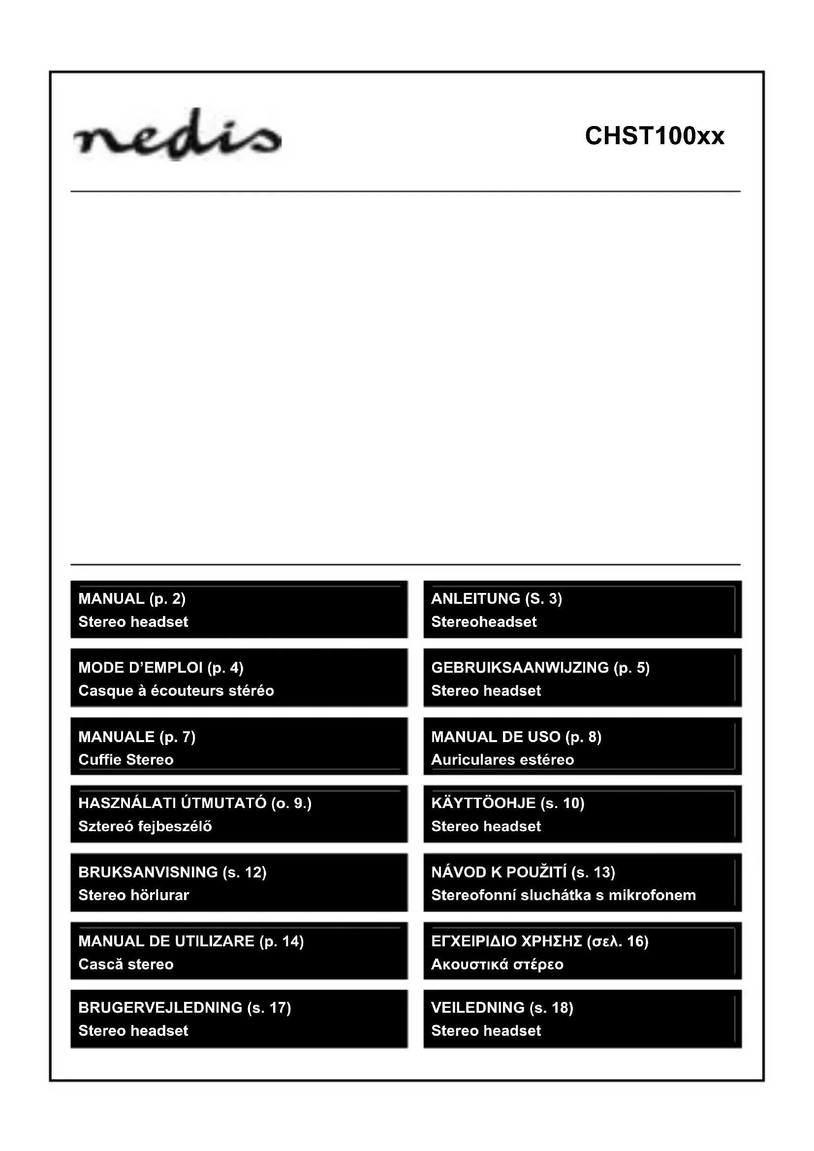 CHST100BK - Ecouteur NEDIS - Notice d'utilisation et mode d'emploi gratuit